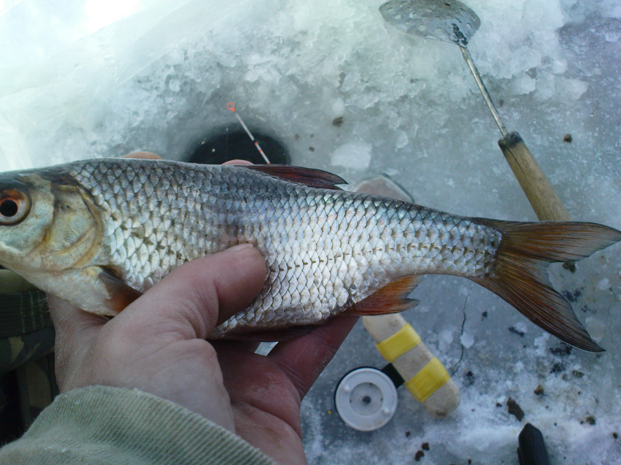 Всем привет.Сегодня собирались поехать в Градижск но несуждено наверное было..Утром отказалась заводится машина моего товарища.Товарищи своих ходом отказались добираться и пошли по домам спать.Ну а я если собрался,значит надо куда-нибудь поехать.Решил сьездить проверить Корчеватое так как в этом году еще там не рыбачил.На автобус и вперед на Власовку. Двадцать минут пешком от Власовки и уже на льду.Решил проверить свое местечко на котором зимой постоянно рыбачу.В толпу лезть не стал,плучилось одна толпа слева а другая справа а я и еще немного рыбаков посредине на мелячку 1.5м.Прикормил и минут через десять увидел пару поклевок,потом 8-30 пошла водичка и первая рыбешка.Потом до обеда экспереминтировал с насадками и как всегда выручил черный хлебушек,все остальное напрочь игнорировала.Стабильный клев начался после 13-00 и продолжался аж до вечера,даже на автобус опоздал.В остальных рыбаков не так весело было как у меня,многие рыбаки даже клева невидели,с разговоров понял что основная масса упиралась на вымя и мотыль.Итог рыбалки 6.5 кг красивой тарани.