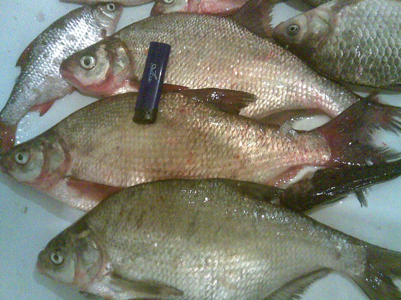 После повторных закормов в количестве 5 кормушек потихоньку начали клеваки. Ловился крупный карась, потом пошел подлящик 400-800 грамм. Клев был стабильным и хорошим с небольшими периодическими затуханиями. После 12 проскакивала «николаевская» густера и крупная плотва. Кода дали водичку, поменял поводки с 0,14 мм на 0,18мм – не выдерживали сопротивления рыбы + течения.
