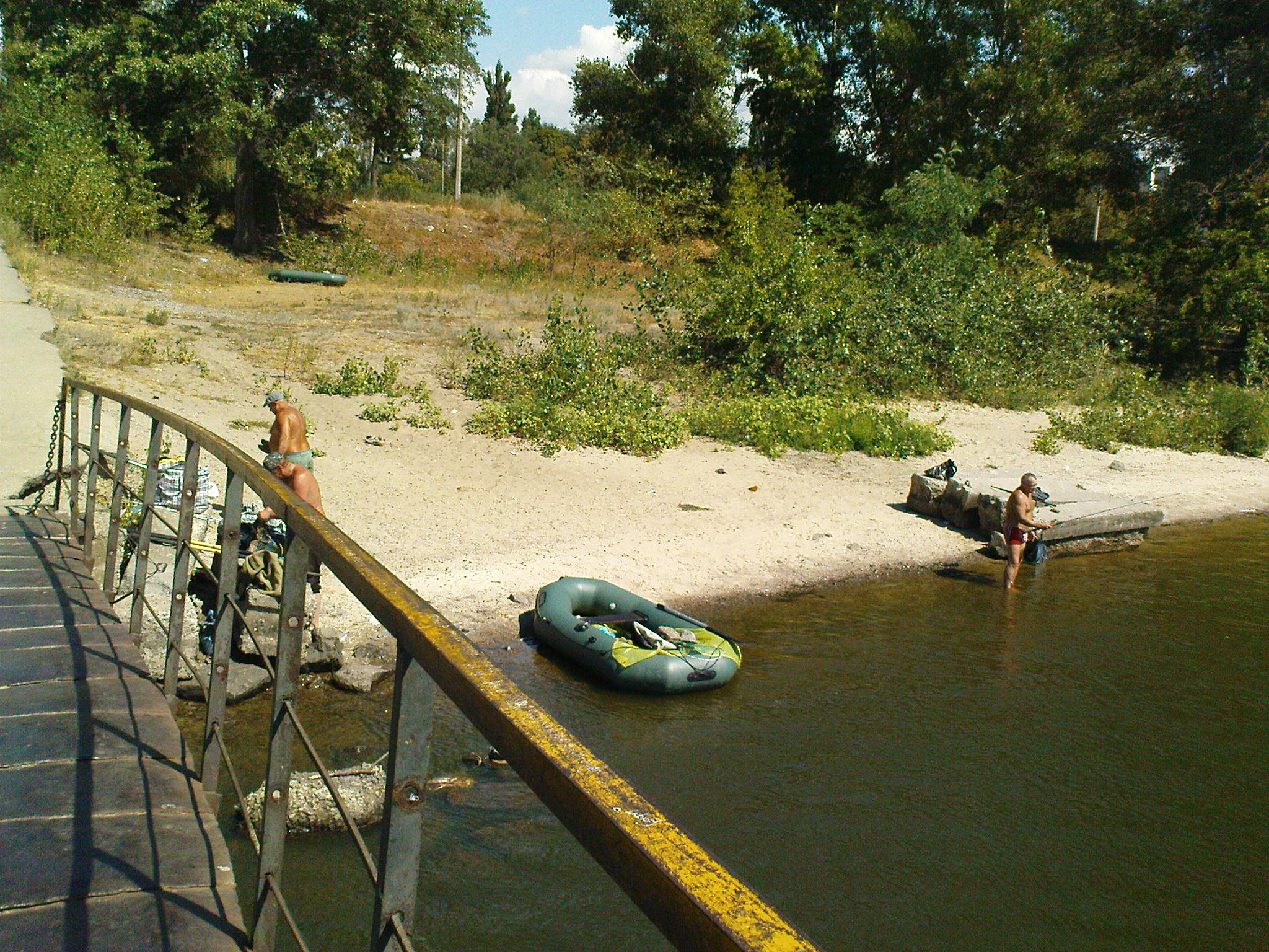 Отчитаюсь о сегодняшнем выходе на берег.Была скорее тренировка-разведка боем,а не рыбалка.Побывал сегодня в грузовом порту в конце дамбы(на выходе),понесло меня туда т.к нужно было место без течения и чтобы бросить подальше.Прикупил на днях новую катуху для фидера + шнур + фидерную леску и решил поупрожняться на дальность заброса,т.к. катушка покупалась именно для дального броска и мощного выматывания обратно на берег.Пришел,разложился,побросал немного разные веса и на леске и на шнуре.И тут вовремя очередного заброса,с Днепра в залив влетает моторка,я как раз выматываю шнур(на другом конце пружинка 30г ) я думал что ничего страшного лодка в 50ти метрах от берега,ан нет зацепил пи....с.И 40 метров Power pro (муха не сидела) намотало на винт.Погоревал немного,но от рыбалки не отказался поймал с десяток карасиков(как он мне уже надоел этот карась :) )убрался восвояси.НЕмного местных пейзажей: