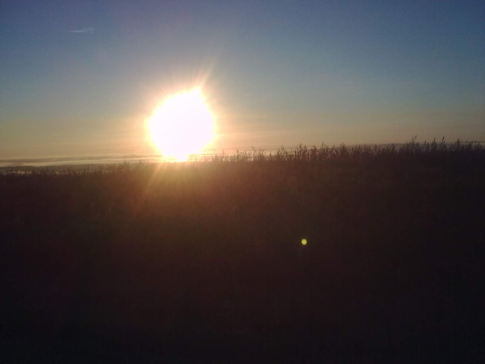 С утра полюбовались осенним рассветом с Чиколовской горки вниз на заливы - туман похожий на снег.