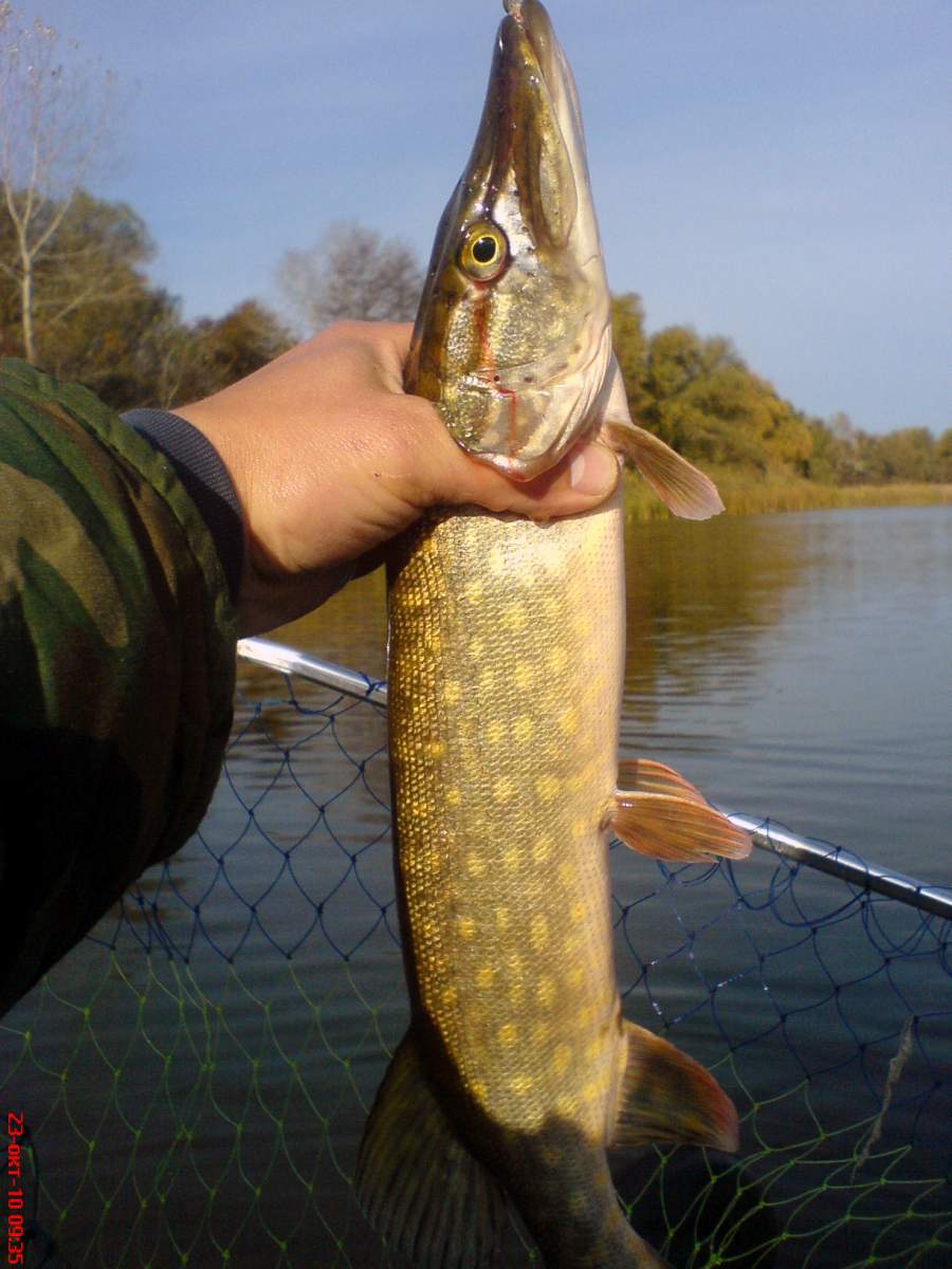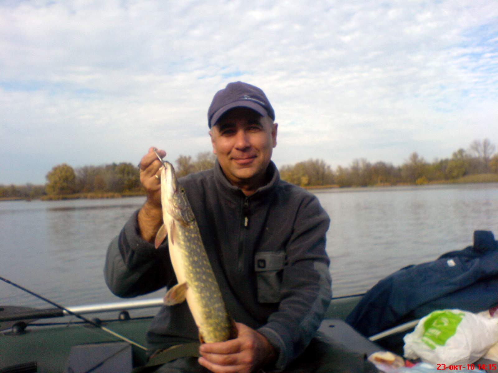 Дорый вечер всем!!!Сегодня не планово выехал на рыбалку.., место прежнее,-Чикаловка-груша!!!Встретил мног форумчан,думаю каждый за себя отпишется...Не успев заплыть,как подлететь Крым с проверкой документов,во главе с Рубаном В.А....Начал облавливать район выхода в открытый Днепр,-безрезультатно!!!В отличии от Жени пола,который в течении получаса выудил три зачетные щуки!!!Лов вели на одинаковые воблера...,видно Женя что то знает,но молчит....:)Я "обидевшись" ушел искать другие места...,и не зря!!!В районе о.Славы , на перекате взял отменную щуку, за которой охотился три года,в целях изготовления чучела!!!Затянула красавица-6кг!!!Дальнейшие поиски,-безрезультатны...По возращении на базу,опять же на небольшом перекате взял щучку на кило...,которая по сравнению с предшествующей, смотрелась карандашом!!Отличилась опять же ДТшка-16(5м.заглубления) и новый воблер-двухсоставничек,натуралочка(4-5м.),приобретенная у Костика кокса в магазине,-названия,к сожалению не помню(может Костя подскажет),работающяя обалденно!!!(2-е рыбалки подряд дает уловистые результаты).Дозу адреналина,положительных эмоций и укрепления тонуса,-ПОЛУЧИЛ!!! ВСЕ УДАЧИ!!!!!!!!!:присоединяюсь: