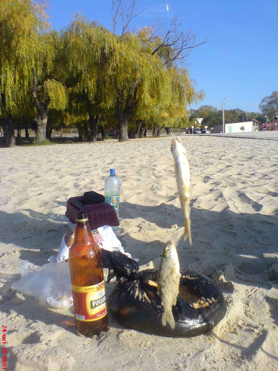 Как и запланировал в воскресенье на пляжу. По рыбалке. Воды не было, дали только в 5 вечера. Так что, ловилась рыбка редко и размер не радовал.