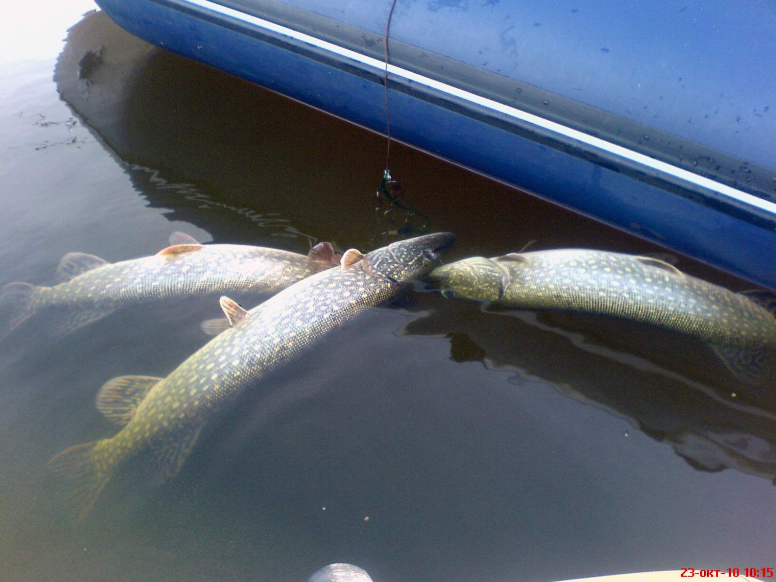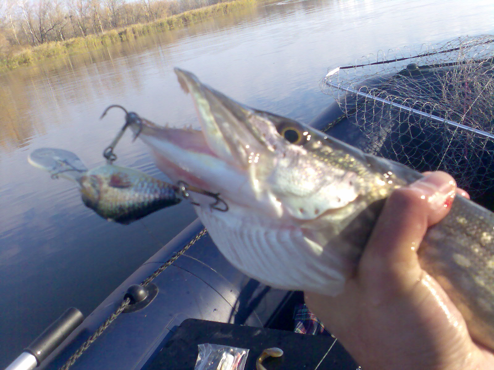Суббота прошла более-менее - 3 щучки (1,1-1,5кг) + 2 (около 300гр, топить было бессмысленно т.к. голодные попались), а также пяток окуней...