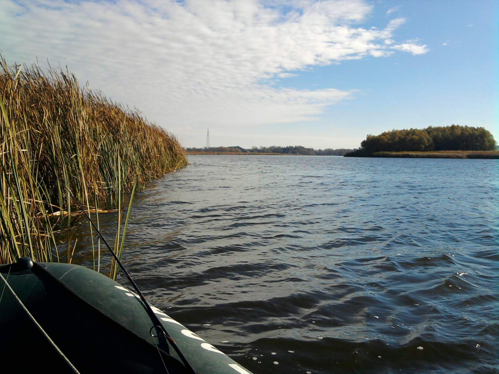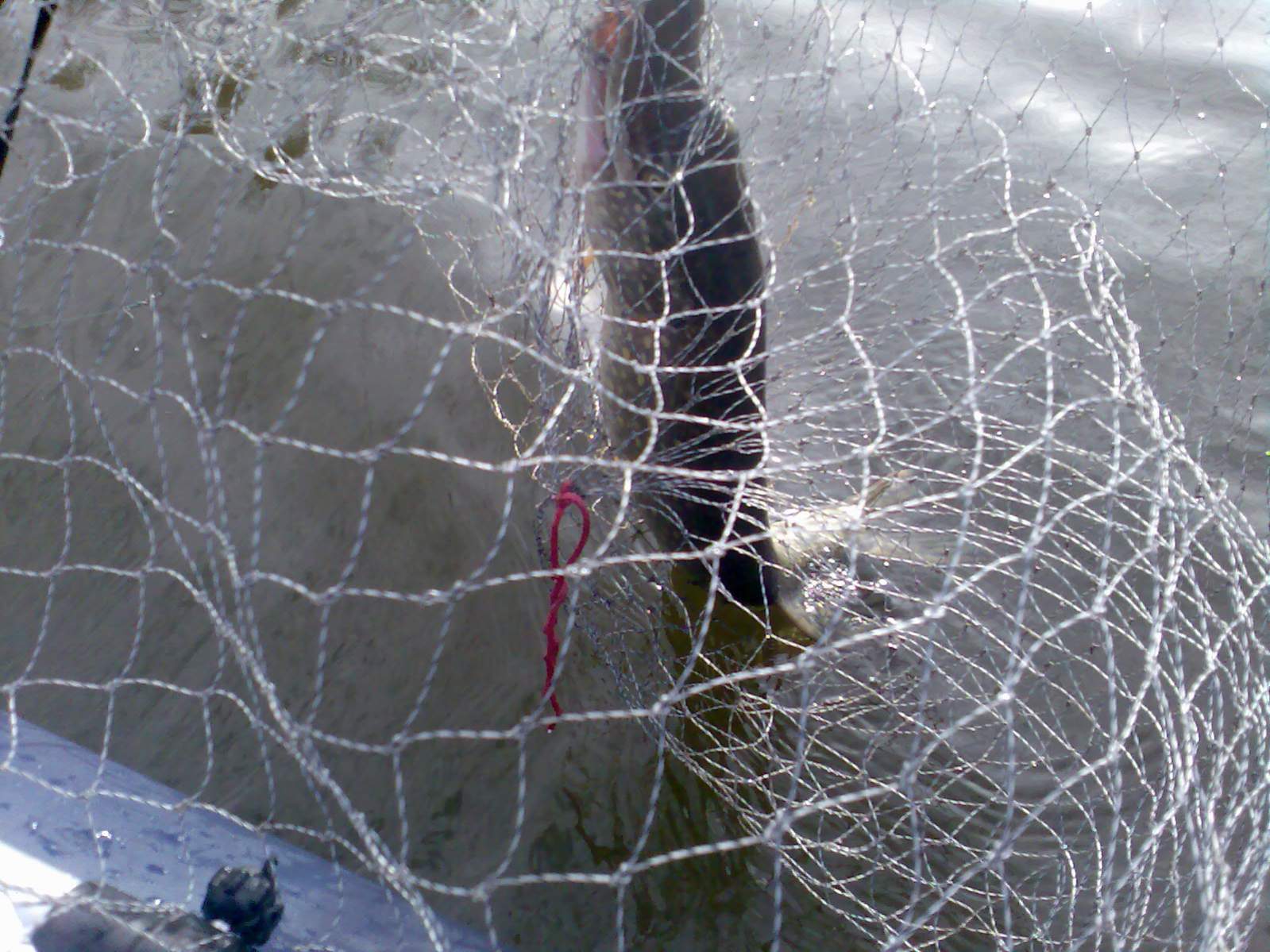 Толик хотел посмотреть другие акватории лова, и мы решили поехать на дальний кордон. По поти немного пытались тролить, я на моторе, Толик на веслах, но все безрезультатно. Сильный ветер и волна, не давали комфортно рыбачить. Решили спрятаться за острова с подветренной стороны. Что принесло свои результаты. на первом же проходе я засадил оба воблера в сетку. Толик предложил помощь в виде ножа, и оно под него ушла. В сетке было немного тараночки, карасей и раков. Сетку в лодку, и тролим дальше, прохожу 50м, твою дивизию, еще одна. И снова оба воблера в сетке. Процедура таже. Сетки вываливаються через борта, еду к ближайшему острову, все это изнечтожить :1042: и помыть лодку. Вообщем Толик остался изучать акваторию, я умчался на берег.