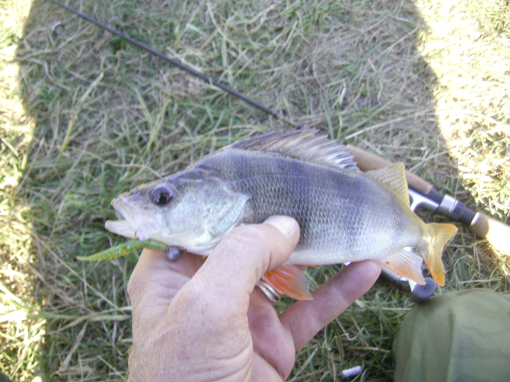 Был утром на карьере. Нашел хорошего окуня только в одном месте, и тот оказался "трудовым". Мелкого (как на фото на ладошке) очень много, при желании на съедобку при правильном монтаже и проводке можно наловить много. Но меня интересовал тот, что крупнее, поэтому пришлось дополнять резину поппером, воблерами и т.д.