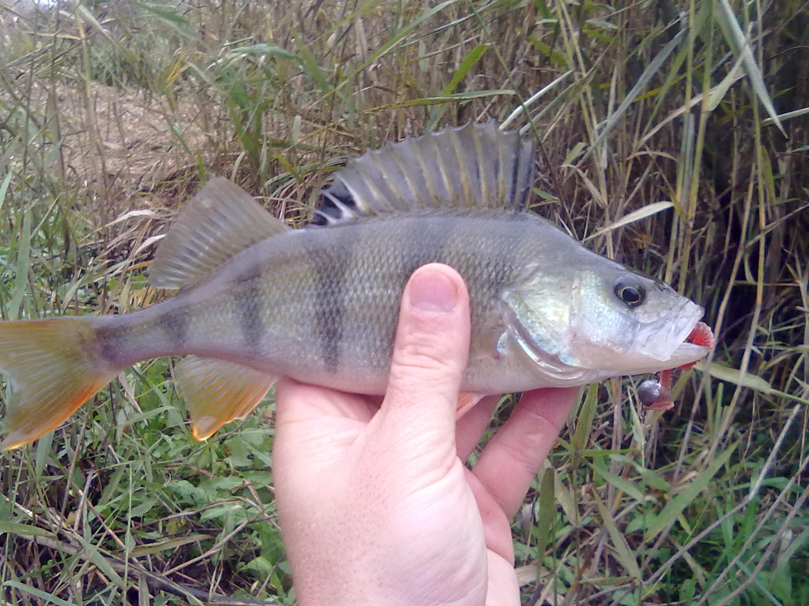После обеда решил порыбачить возле стадиона. Клевал микроокунь на съедобку, не плохо, самый крупный на фото. А потом пошел дождь и затихло, еще под мостом шото цепонуло, но до берега не дотянул, сошло.