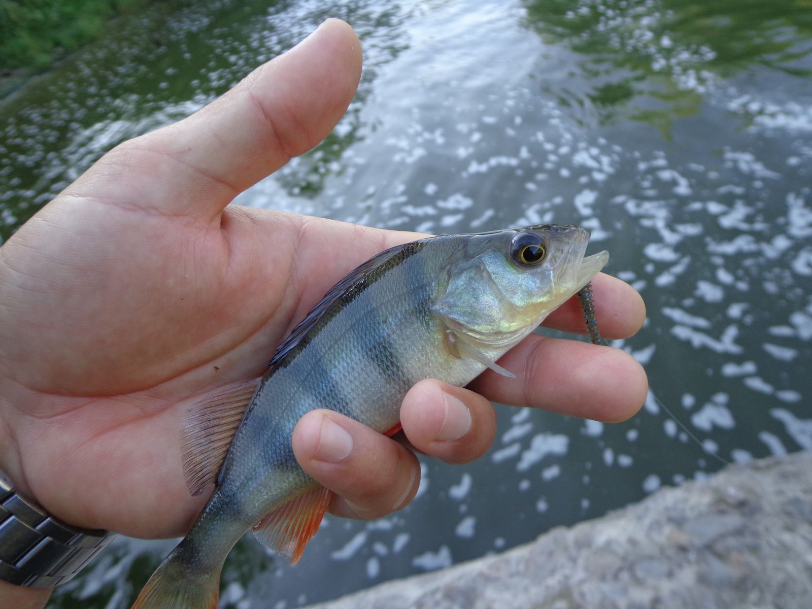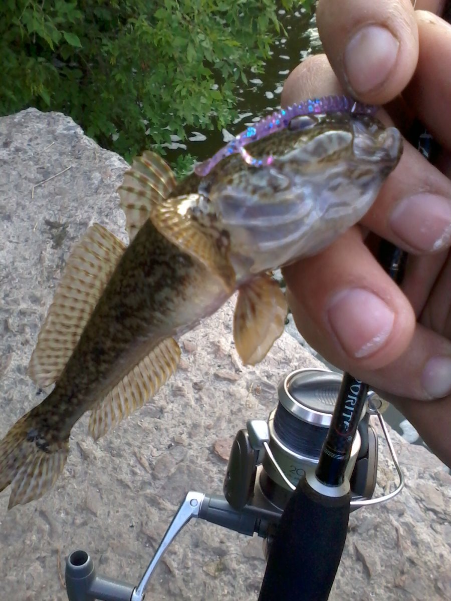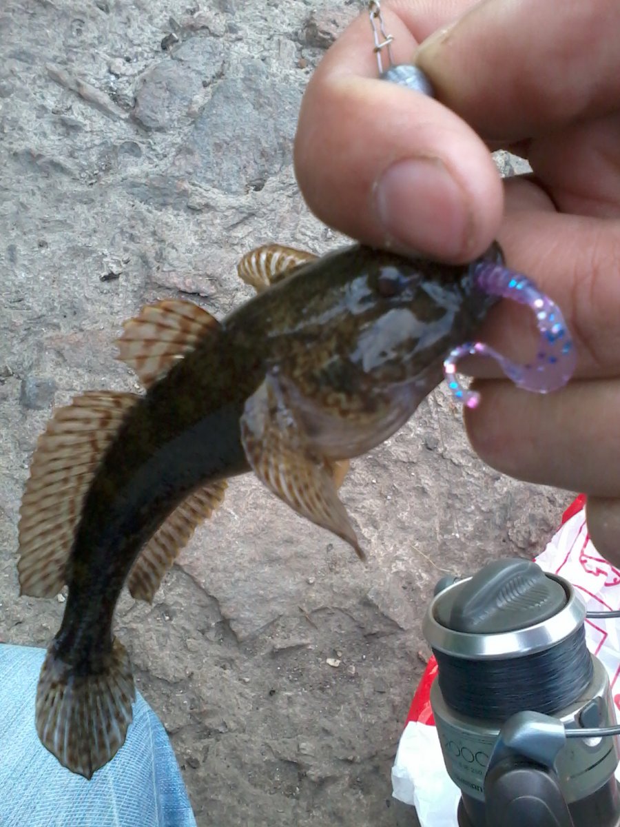 Утром посетил водосброс. Развлекался ловлей бычка, ну и окунь был. Клев слабый, но был.