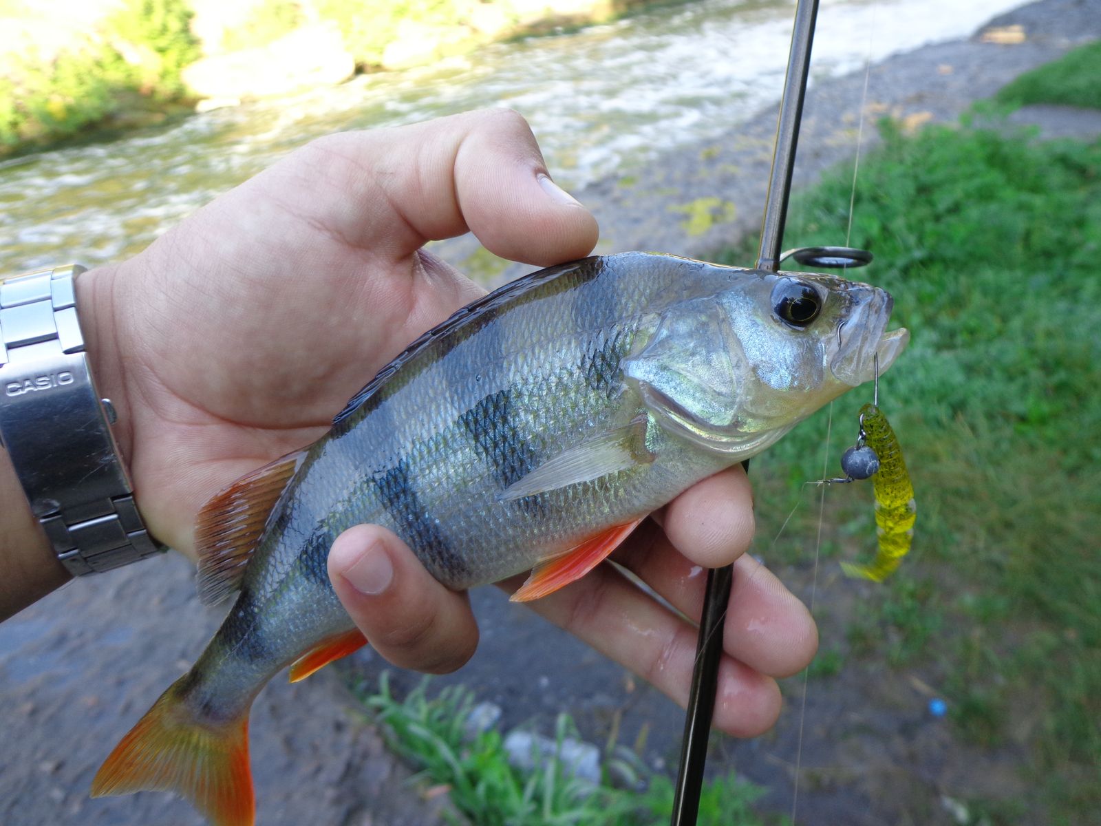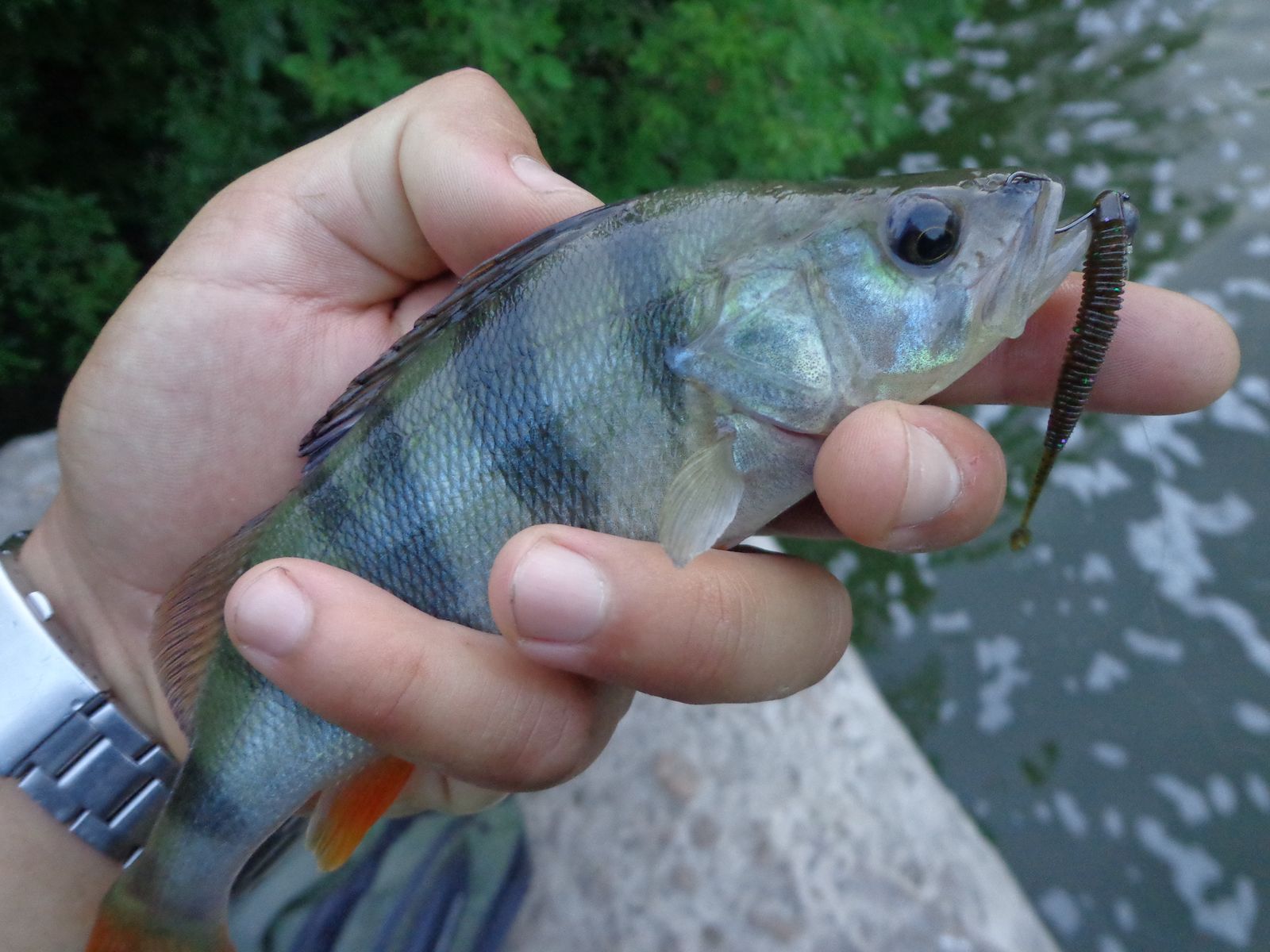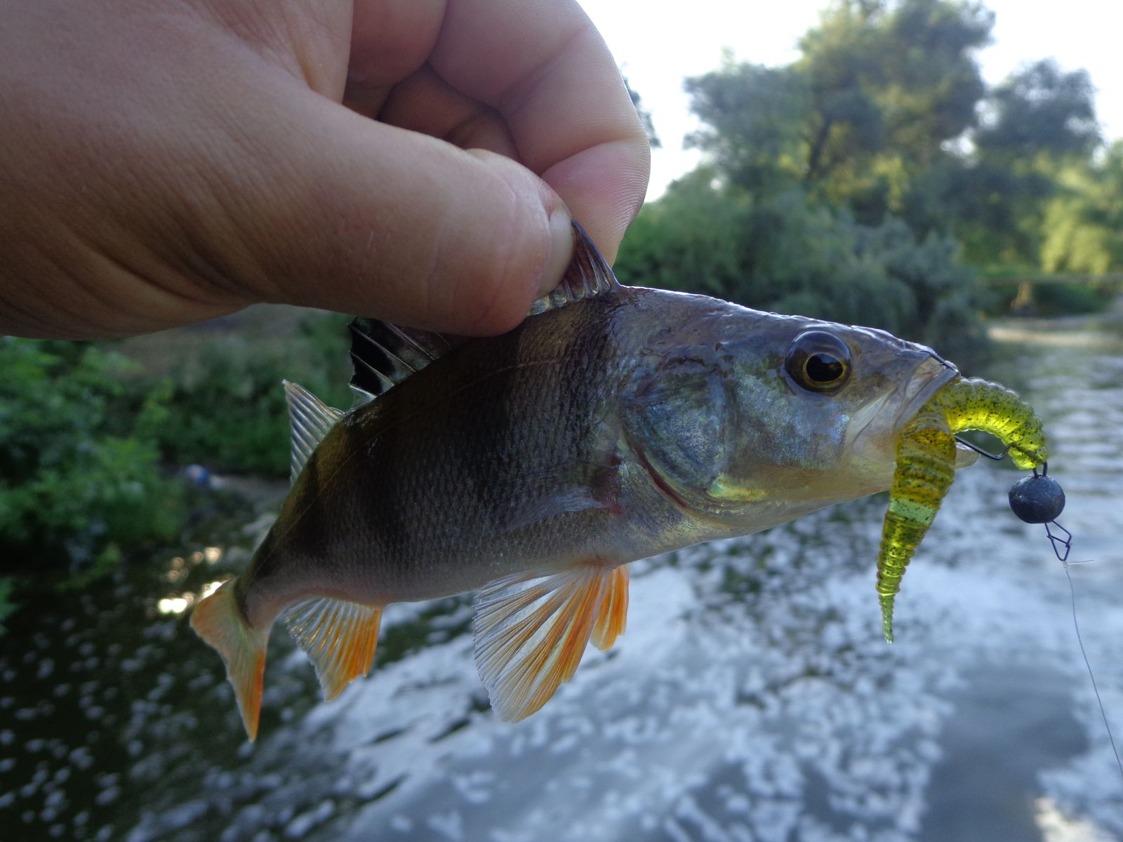 Утром посетил водосброс. Развлекался ловлей бычка, ну и окунь был. Клев слабый, но был.
