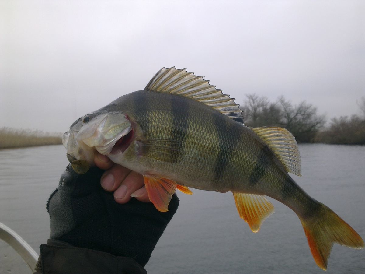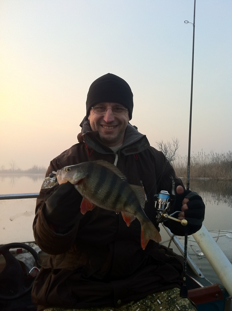 Приехали в 8:00 лодки были уже заряжены сух. паями и термосами с горячим чаем. Запрыгнули в лодки и помчались искать счастья. Начали поиск с провереных ям в надежде на крупный Джек-Пот. Но видать розыгрыша в этот день не было (или у нас были не те лотерейные билеты). Потом пошли искать счастье на мелководье в озерах, по предворительно полученой информации на твичинг за пару дней до этого можно было сделать результат. Но ветер не давал возможности спокойно ловить, а подветреная сторона камыша была скована льдом.