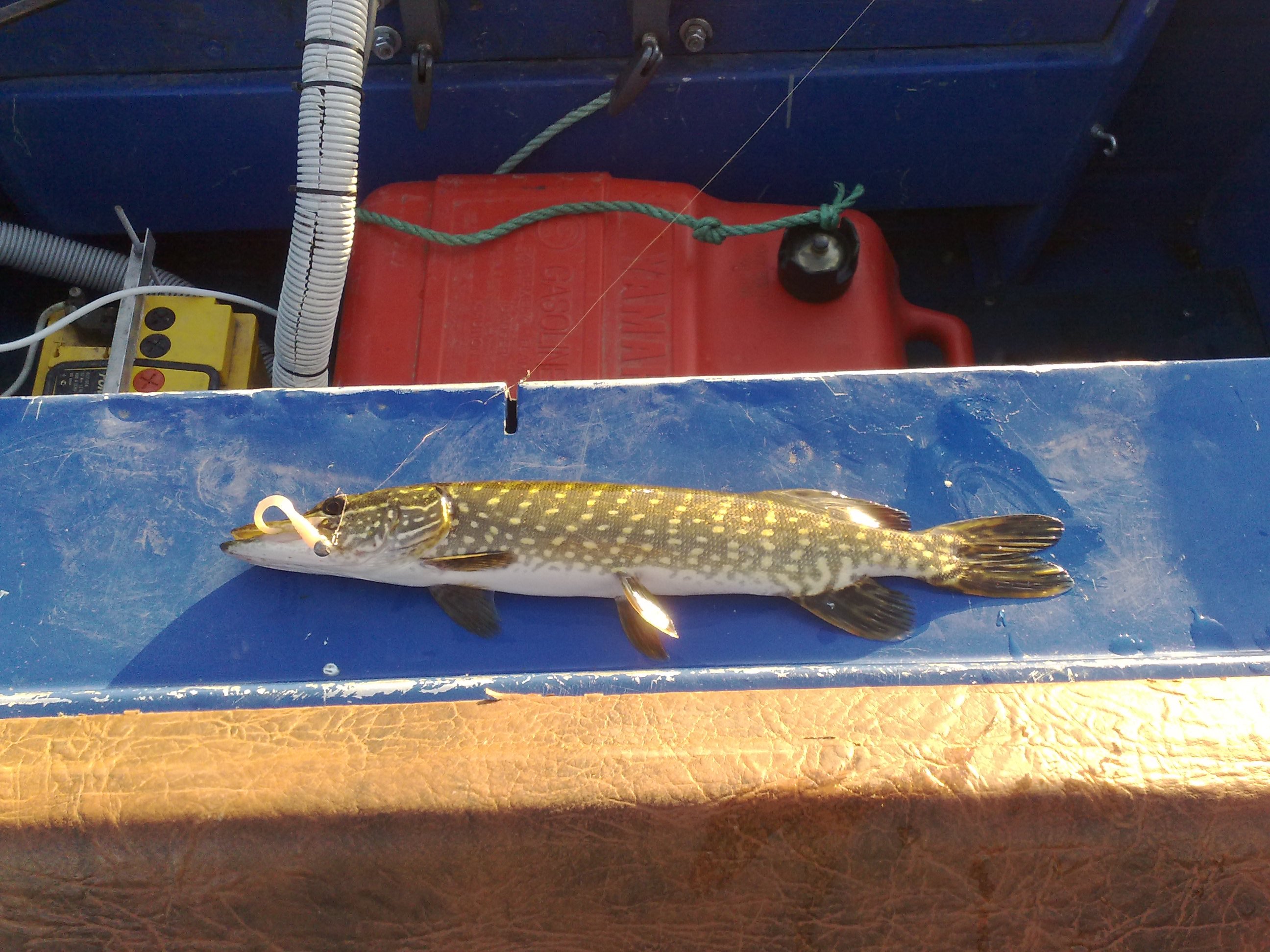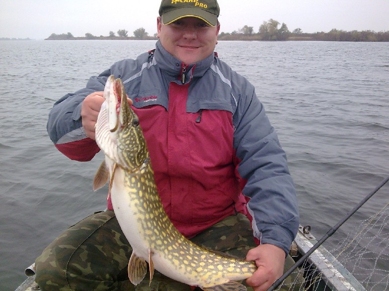 Прибывая утром в размышлениях на тему что делать и кто виноват, почитывая различные прогнозы экономического и курсового будущего, поймал себя на мысли, что так можно далеко зайти (при соответствующей самонакрутке), а так далеко не надо, ибо можно и не вернуться! И с этим оптимистическим открытием решил смотаться на "Дельту", узнать то-се и выскочить на часок. То-се заняло больше времени чем думал, но подошла информация от ночных ныряльщиков, щуки валом и крупной, но вся лежит в траве (в разговоре вечером с одним главредом, он сообщил что в следующем номере по этому поводу будет статья). А мы-ж уже спортсмены, йоп-йоп. Беру улайт и пересекаю Днепр, прямо напротив выхода с Кошевой. Становлюсь на той стороне, а там отмель , под камышем метр и дальше до 2-2,5 (к фарватеру на метров 30-50). Стою на 2-х м, везде трава (там никто не ловит), ставлю свой твистерок-чемпион (отдельная история, будет в теме соревнования), головочку 3 гр. Заброс к берегу наискосок вниз по течению и с легким покачиванием на подмотке ( подсмотренно у Харьковчан), на середине дистанции удар! Первый заброс! Фрикцион работает (но попущен до- немогу, шнур 0,08), легкая приятная борьба и на фото сессию! Зачет, на глаз 37-40 см, подростать до новых стартов! Правда в следующие 40 мин по нулям (потянуло, а зря на 4-5 м). Завтра постараюсь выскочить половить на песчаном дне с ракушкой с глубинами 1,5-2 м.