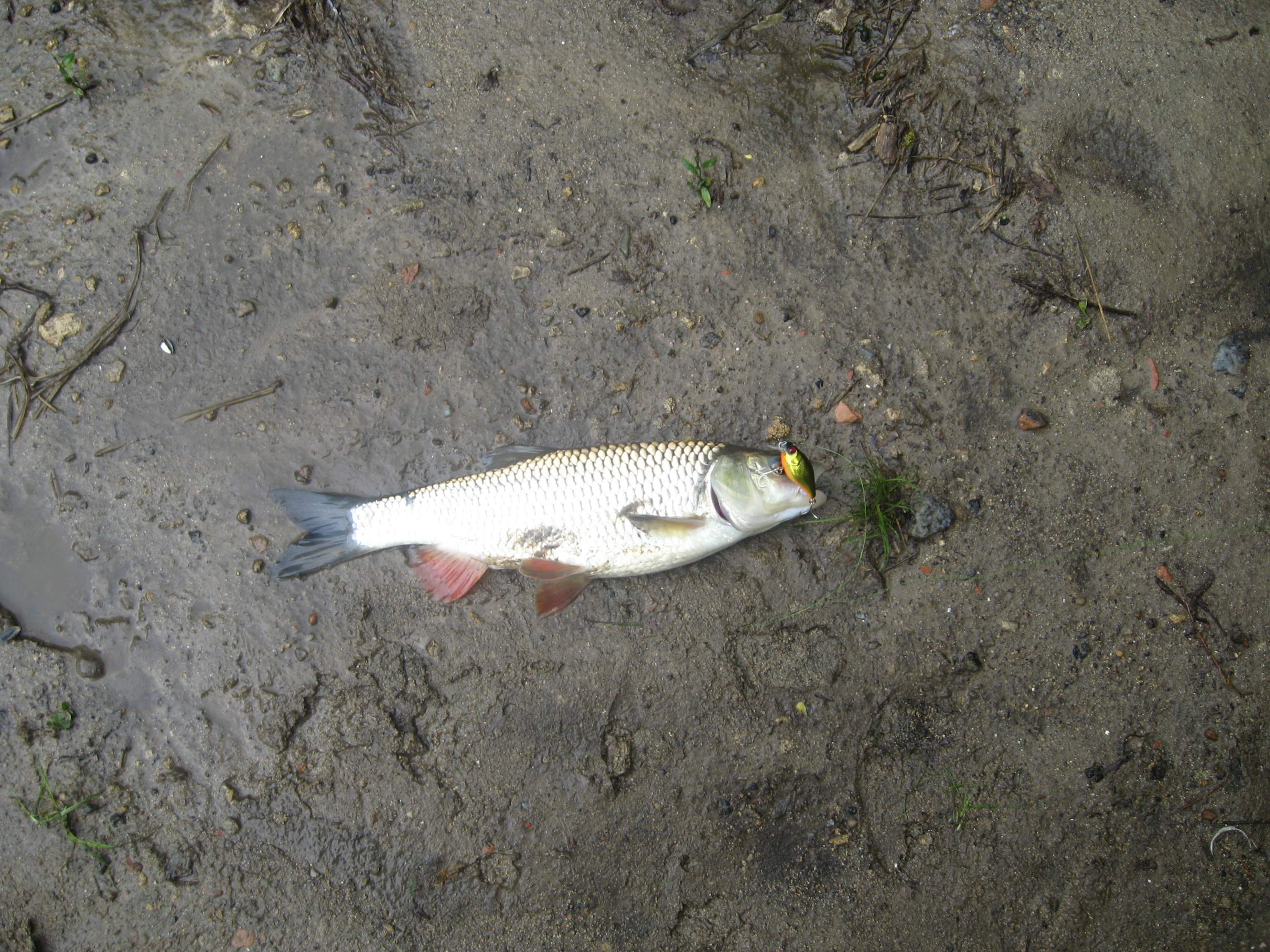 Был на выходных на родине. Не смог удержатся и сходил на рыбалку. Речка страшно измельчала и заросла, рыбка еще встречается правда за селом свирепствуют электроудочники(( ..есть карась, окунь проскакивает мелкий судачок, карп.. порадовало большое количество мелкого голавля. Из за зарослей мест для бросания спининга практически нет. Охотился на голавля в основном сплавом воблера (салмо тини) вниз по течению и потом пдтягивал к себе. В местах где можно было забросить воблер голавль брал ПЛЮХ, зрелище супер.... Очень хочется еще побывать там....