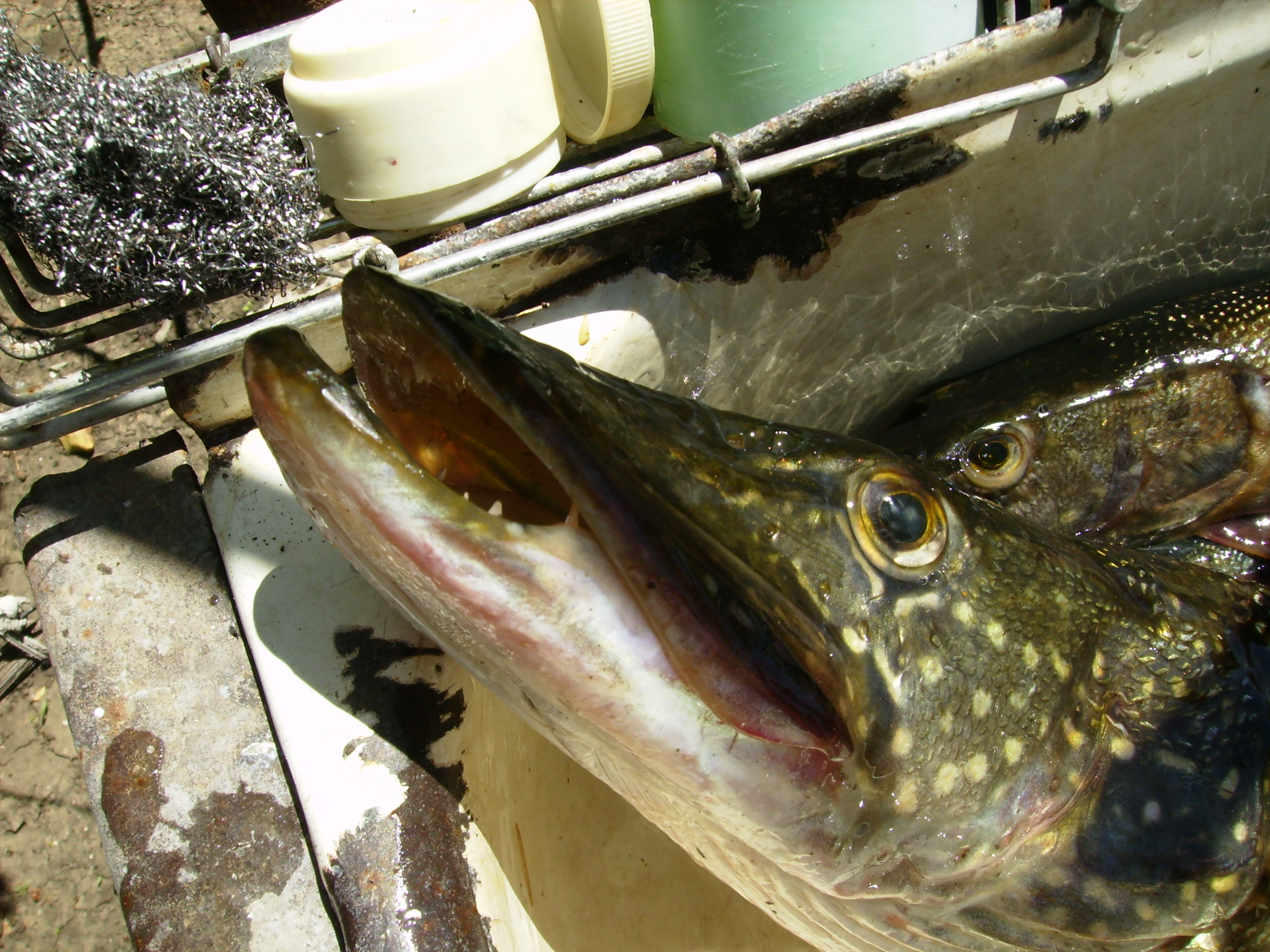 Сегодняшнее утро провели с товарищем на речке в районе села Гуляйполе. С самого рассвета и до часов восьми лишь пару тычков. Затем три голодных щупаря один за одним заставили меня освоить навыки по профессии хирург. После таких операций пациенты к сожалению не выживают, поэтому выпускать не было смысла. Потом пауза часов до десяти и после того, как появилась мысль о возвращении домой, произошла поклевка миникрокодила. После десяти минут изощренной борьбы с элементами акробатики и попытками намотать на себя центнер травы, обильно выросшей в этом году, под бешеный визг фрикциона я одержал победу над самой большой в своей жизни до сегодняшнего дня щукой. Уже несколько лет я не испытывал дрожания в руках после вываживания большой рыбы, да и к тому же борьба со щукой приносит больше адреналина, чем вываживание флегматичного карпа. Добавлю, что все четыре поклевки были на спиннеровскую вращалку под номером 3 с красной пятнистой наклейкой. Фотоотчет прилагается.