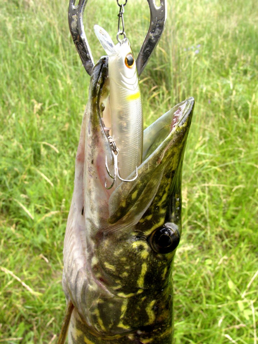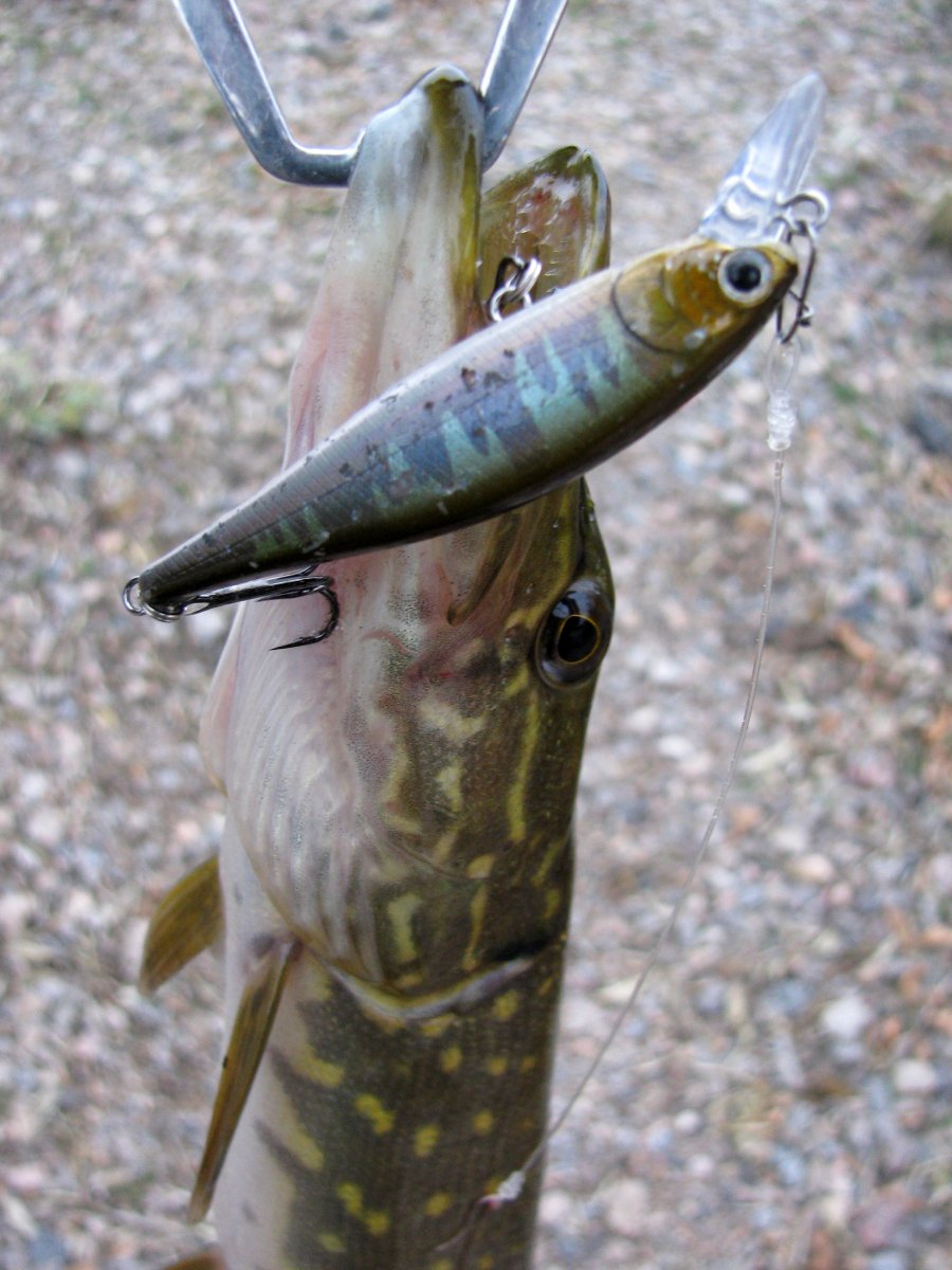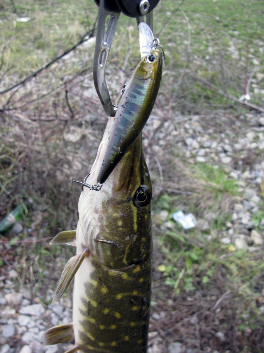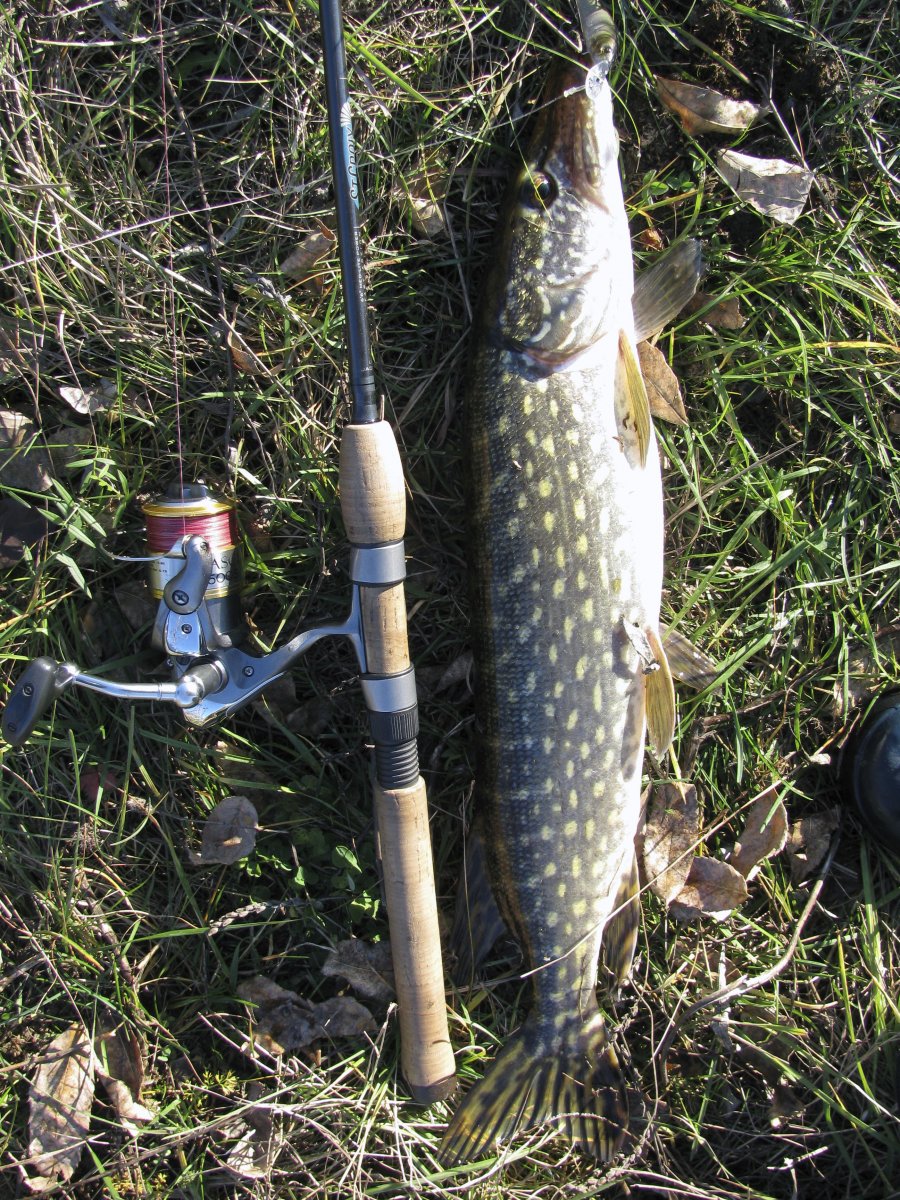 Пополудни удалось посетить этот замечательный водоем. Присутствует небольшое течение, а значит есть надежда на активность хищника. Собираю на берегу комплект для твичинга и в "даль светлую". Щука активна, но довольно привередлива к приманкам. Прогулку можно было назвать рыбалкой одной приманки. Безоговорочным лидером в поимке зубастой оказался Поинтер 65 от Лаки Крафт. На него и были пойманы пол дюжины щупаков. Наибольший на 1.2 кг. При смене приманки следуют легкие тычки, но подсечь клеваку не получается. Перепробовав с пяток воблеров альтернативы лидеру не нашел. Так и рыбачил в течение дня с этой приманкой.