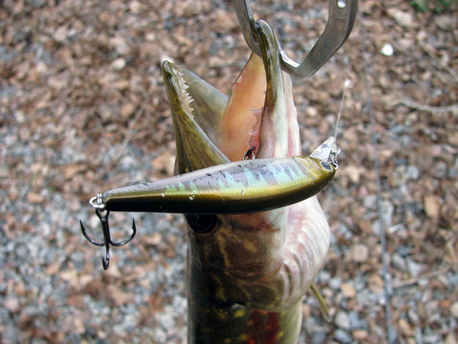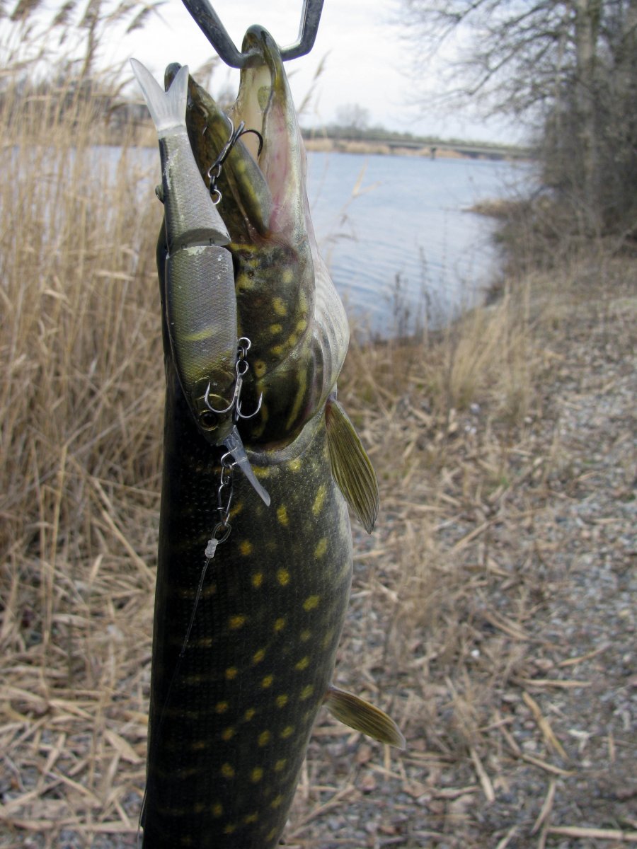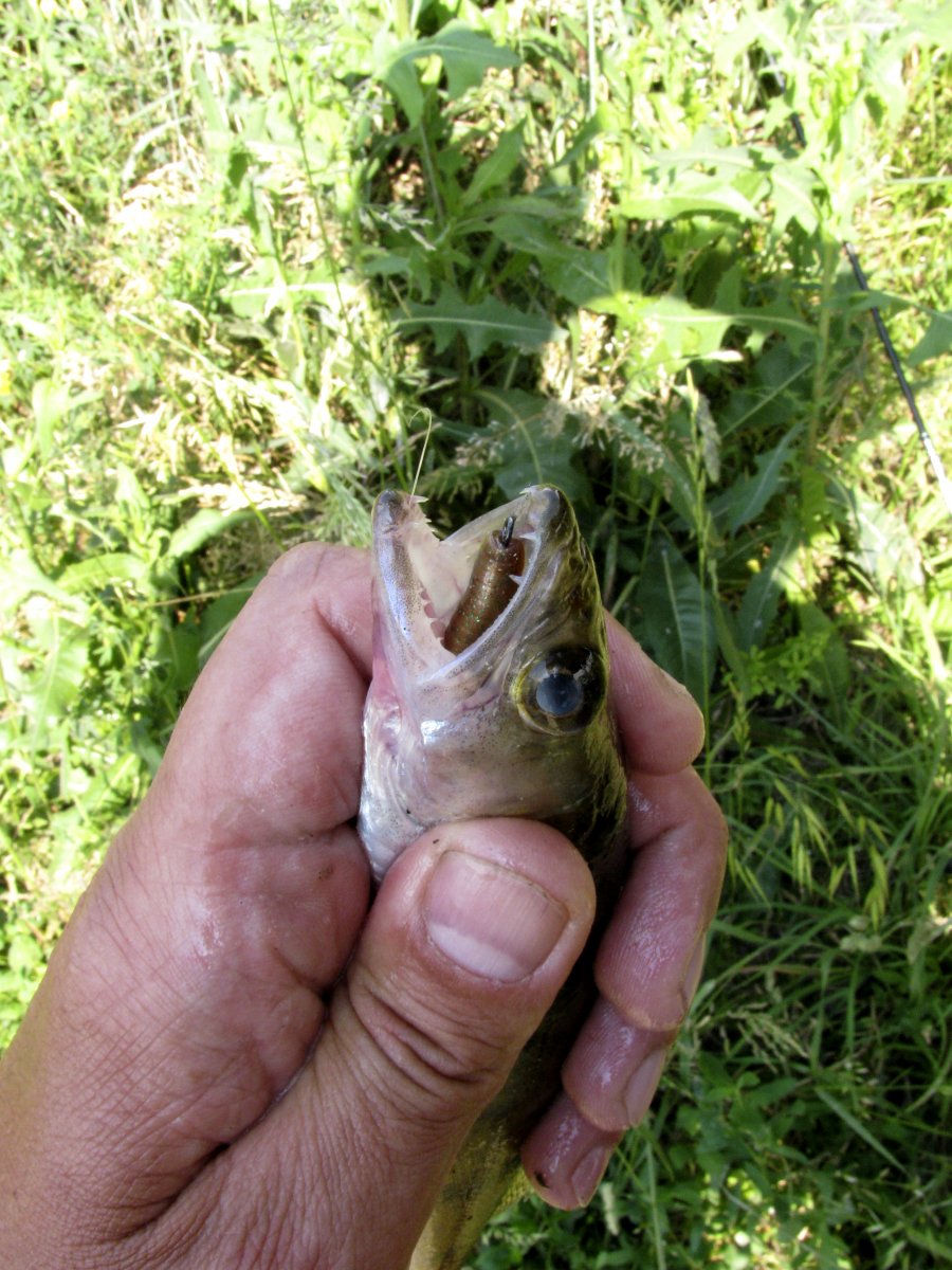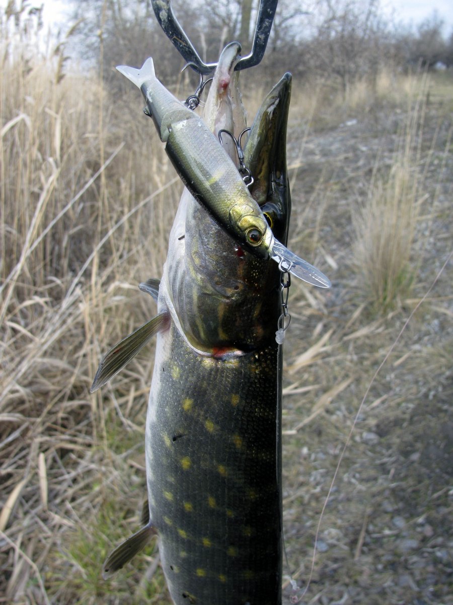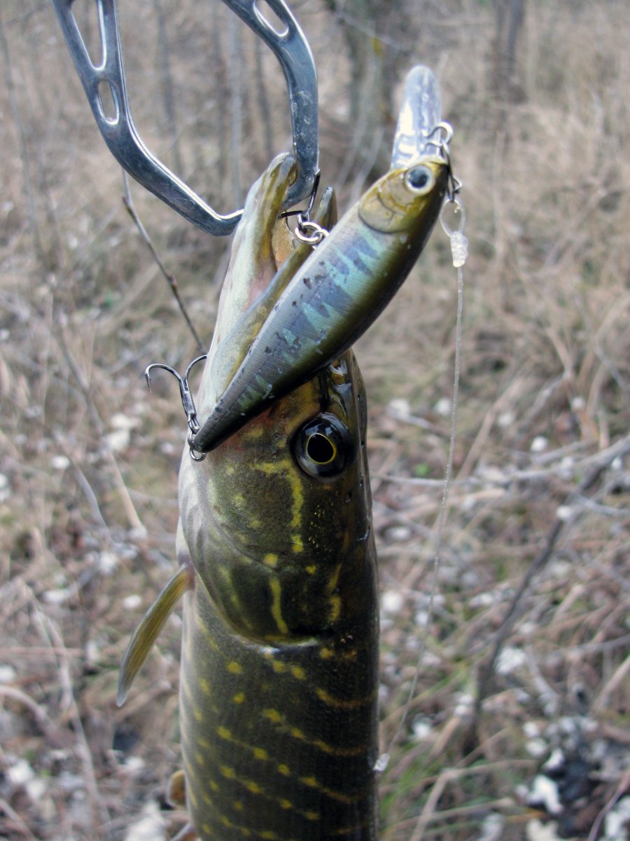 Пополудни удалось посетить этот замечательный водоем. Присутствует небольшое течение, а значит есть надежда на активность хищника. Собираю на берегу комплект для твичинга и в "даль светлую". Щука активна, но довольно привередлива к приманкам. Прогулку можно было назвать рыбалкой одной приманки. Безоговорочным лидером в поимке зубастой оказался Поинтер 65 от Лаки Крафт. На него и были пойманы пол дюжины щупаков. Наибольший на 1.2 кг. При смене приманки следуют легкие тычки, но подсечь клеваку не получается. Перепробовав с пяток воблеров альтернативы лидеру не нашел. Так и рыбачил в течение дня с этой приманкой.