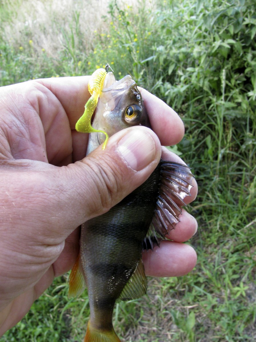 Появилось свободное время, решил уделить его рыбалке. Во второй половине дня выехал на канал, район между мостами с. Преображенка и Бабайковка Царичанского р-на. Цель - подразнить злых щупаков. Щупаки действительно оказались злыми, напрочь отказались реагировать на воблеры-минноу рывковой проводкой. Ставлю 37 твистер от Манс на 5г чебураторе ярко-зеленого цвета. Заброс метров на 40, жду дно... и вот она долгожданная поклевка на падении. Красивая, со щелчком, если-бы на коротке, то у меня из зубов повылетали-бы пломбы.:zachet: Небольшая щучка отчаянно сопротивлялась, за что получила свободу. Еще пяток забросов и Нептун забирает приманку. Мертвая цепа, освободить не удалось. Ставлю аналогичную приманку в цвете "кола". В течение получаса зарабатываю еще одну красивую поклевку. Аналогичный щупарь на берегу. Поклевки вдалеке от берега, если можно так сказать применительно к каналу.