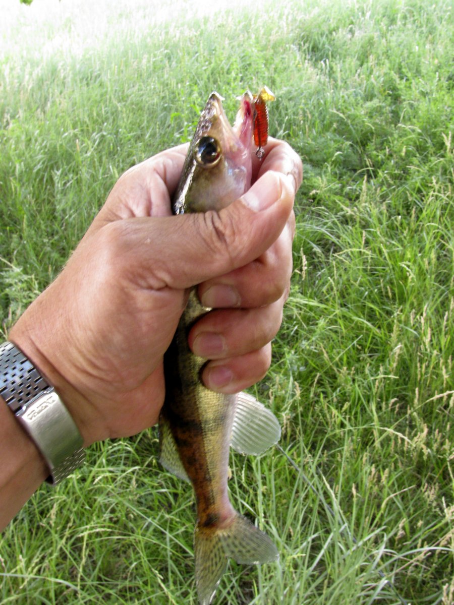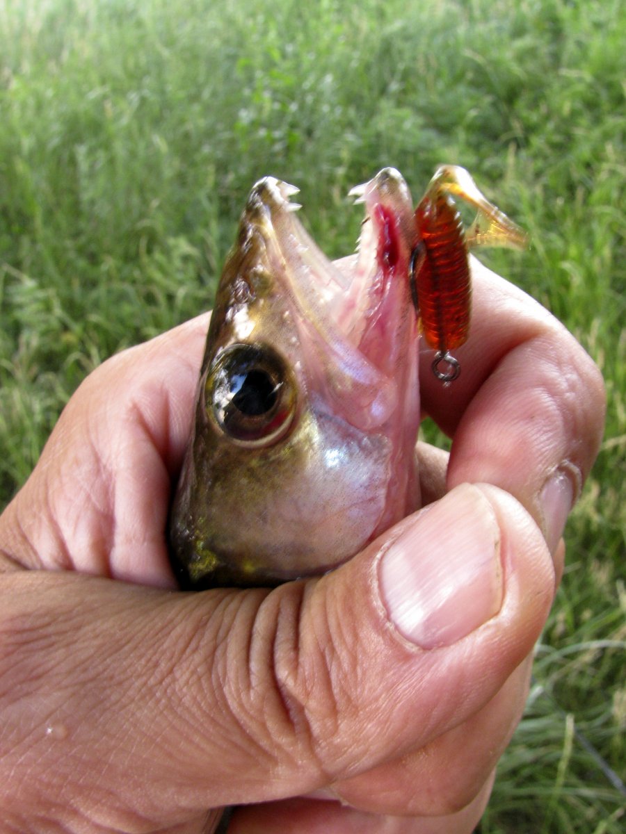 Периодически ставлю миннохи для проверки - ОП, не реагирует на смыкинг. На равномерной проводке атаковал щупак Сквад шад 65 от Джакал. Приманка глубоко проглочена, пришлось изрядно помучиться, чтобы освободить агрессора с минимальными травмами. Весенний день короток, пора и домой собираться. А улов? Ну для этого есть Днепр с просторными водохранилищами.