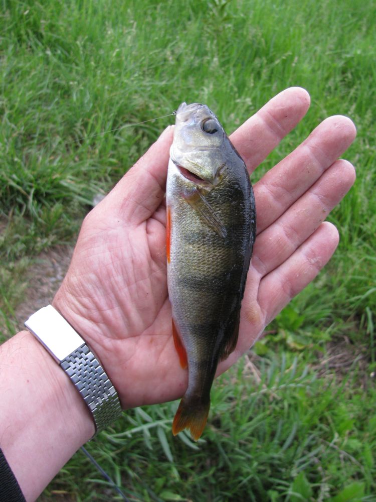В субботу 12.06. в очередной раз выехал на канал подразнить полосатых, предложив МДЖ. С рассвета на водоеме. Уровень воды значительно снижен, присутствует небольшое течение. На проверенном месте с джигголовкой 1.5г довольно комфортно. С первого же заброса поклевка и ладошечный окунь на берегу. В руках окунь кажется теплым. Пробую воду – удивляюсь как при такой температуре рыба проявляет активность, очень теплая. Продолжаю ловлю. Полосатые дружно атакуют приманку на равномерной проводке. Поклевки более нежные, чем в прошлые рыбалки, количество оторванных хвостов на твистерах растет. Пробовал ловить на бесхвостые – окунь не реагирует. С подъемом солнца клев затихает , поэтому заканчиваю рыбалку.
