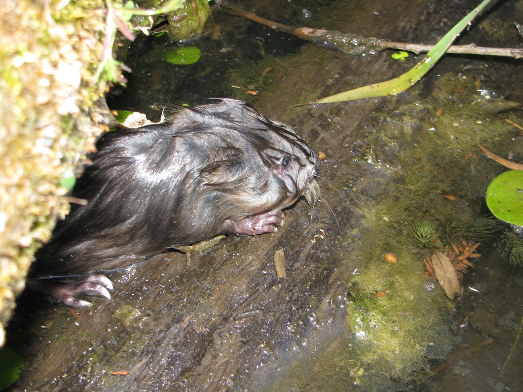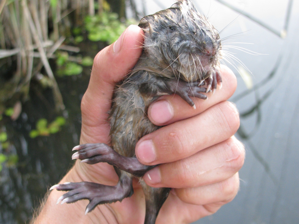 Сьогодні ввечері вийшов на годинку покидати спінінга на одному з ставів поблизу Здолбунова, - а до мене приплело ось таке чудо)));) Щось собі бурмотало під носик, пищало, ніби маму загубило. І дуже впевнено по гілочках до мене прилізло маленьке ондатренятко, саме в руки прилізло))))