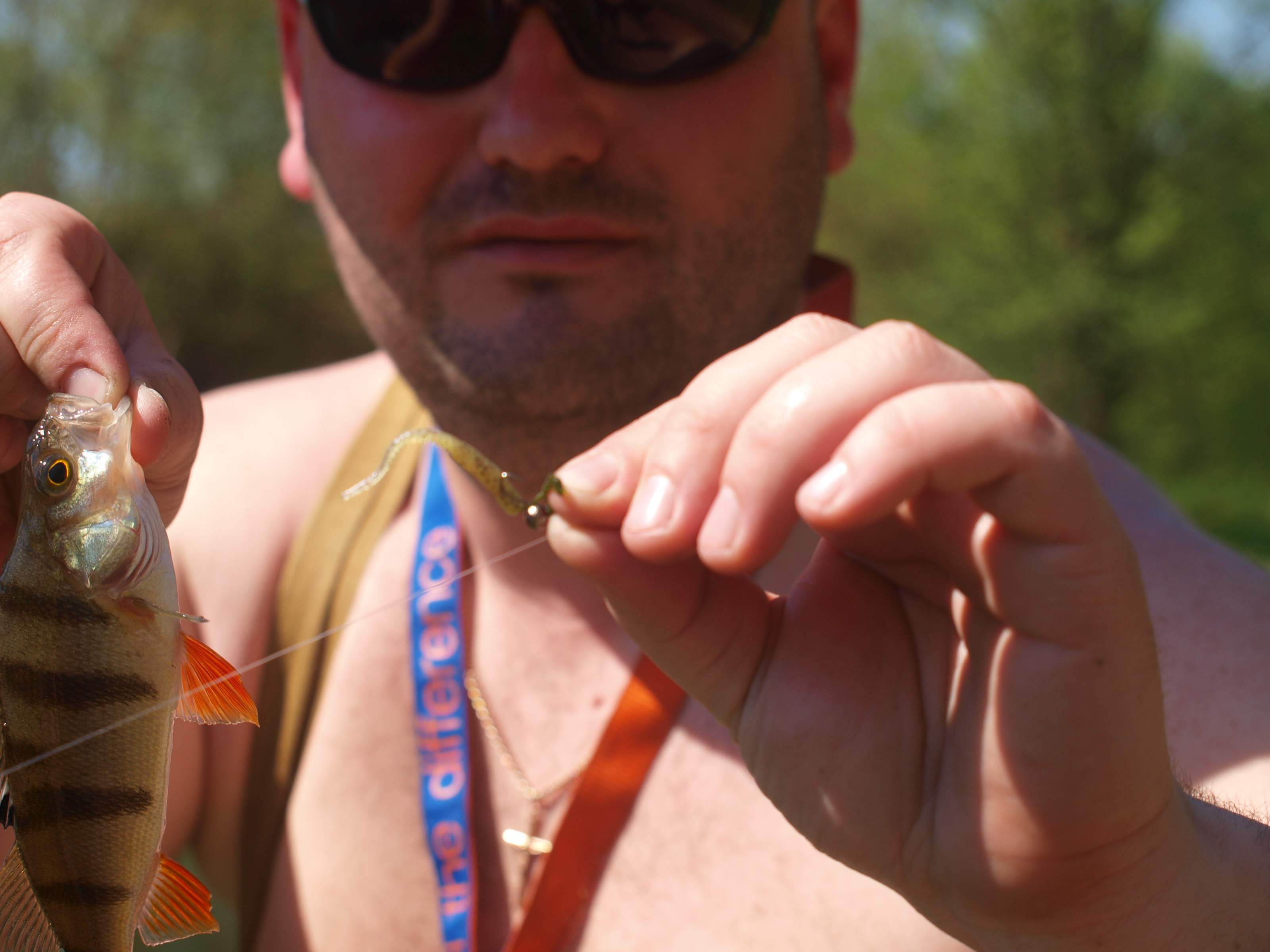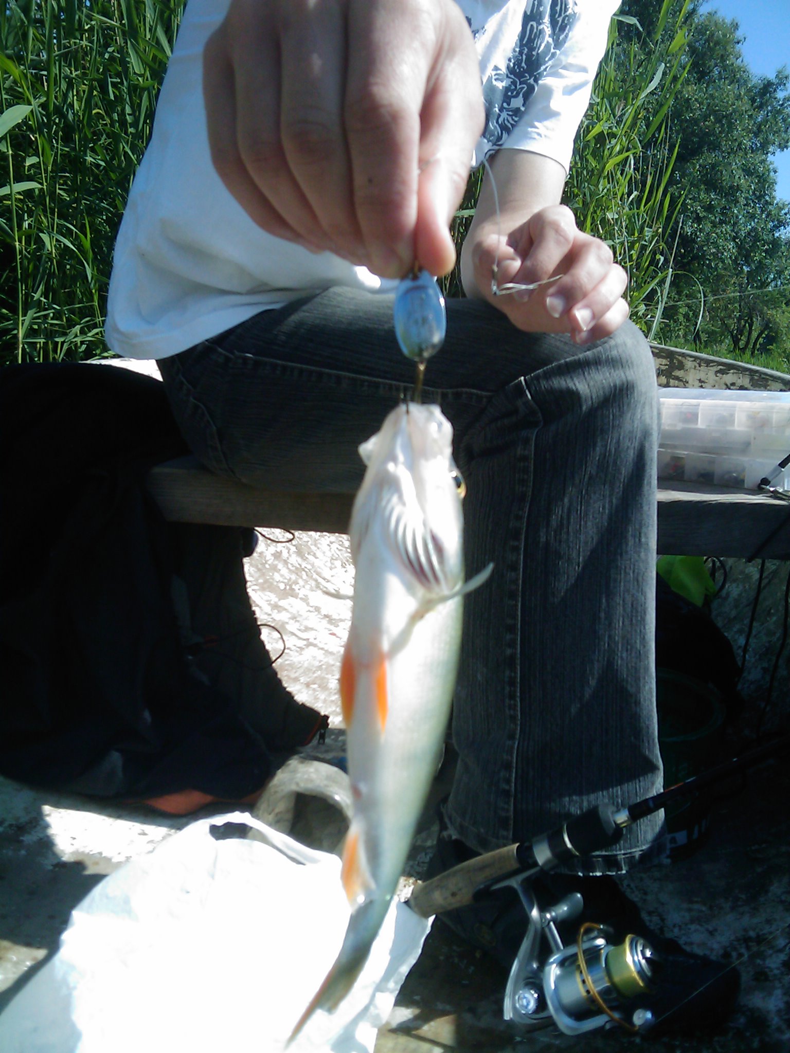 Я дивлячись на його успіхи, мелочь починаю відразу викидати за борт ), починаю укрупнятися приманками, блуфокс №2, 6 гр саморобка - все чіпляється матрос на долоню, набридає топити. Ставлю вертушку-тандем, грам на 8 - що уже на верхній межі тесту, але починає проскакувати крупніший окунь.