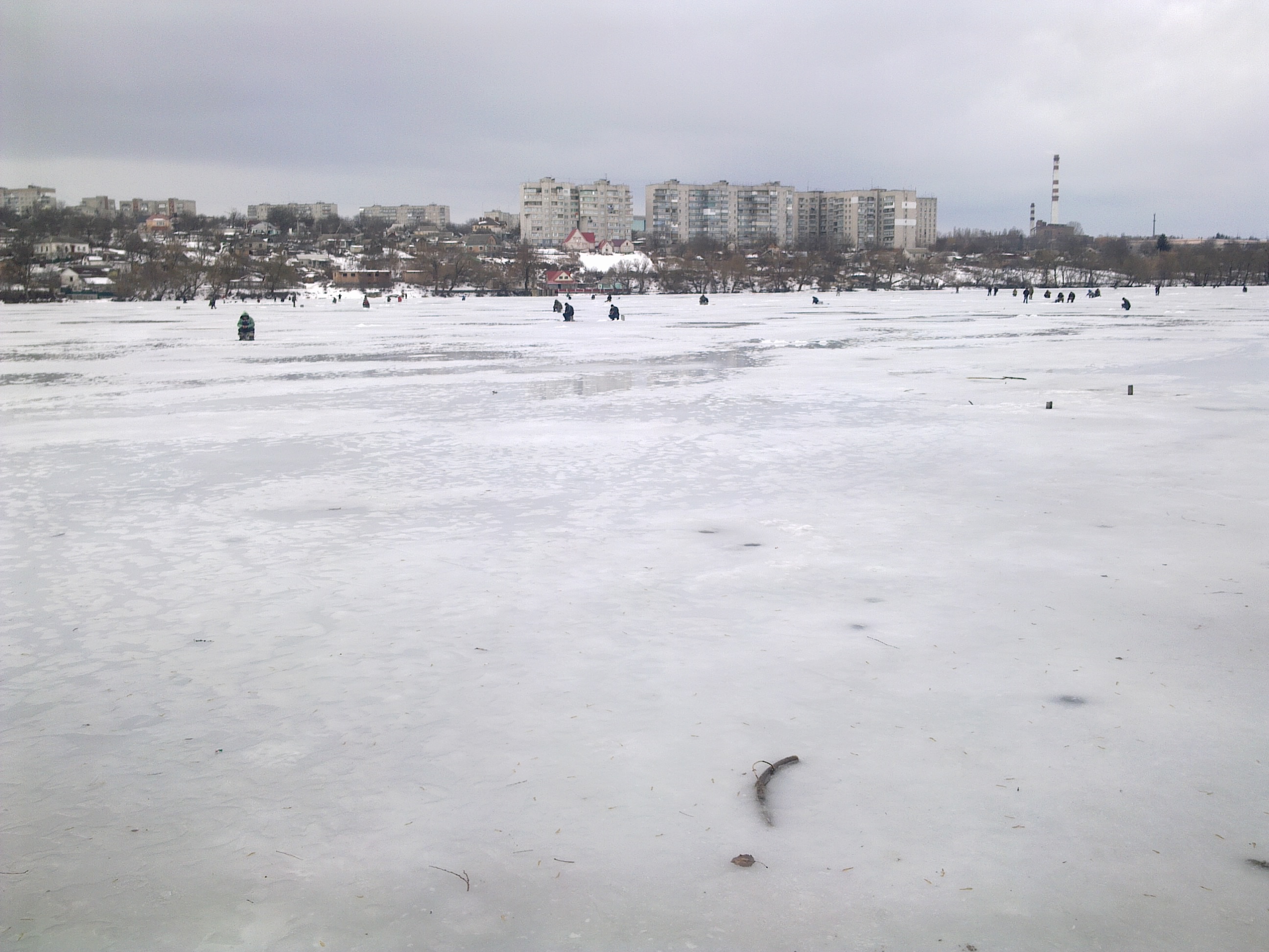 Не выходя из дома вижу как мигрирует рыба по водоему исходя из перемещения кучности рыбаков. Ну и несколько фото пруда "Осташевка" с другого берега на сам пруд и микрорайон в котором живу, фото сделано пол часа назад.