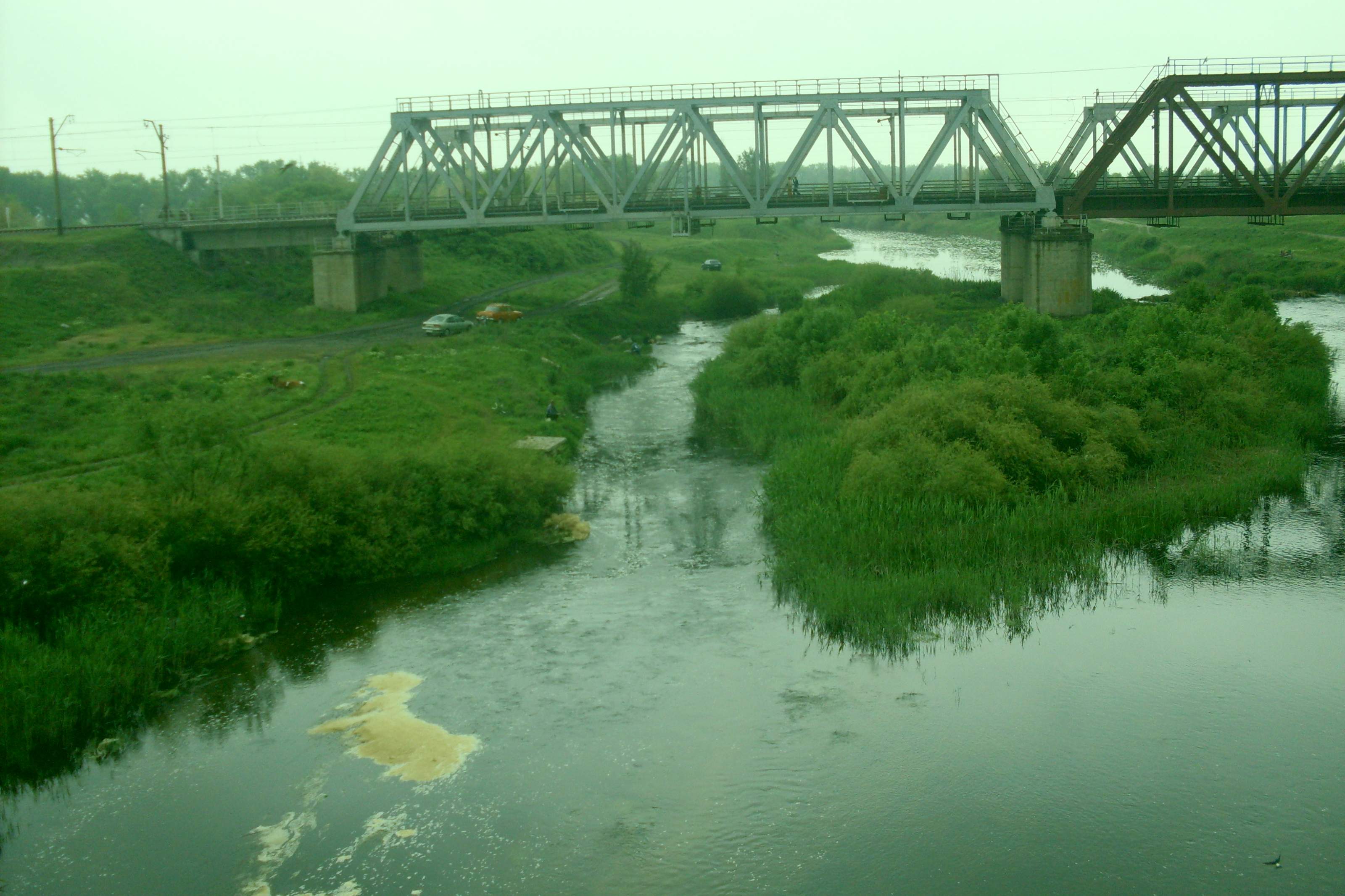 вернулись к ЖД мостам, я поймал еще двоих голавлей и пару штук отпустил - мелкие. решили прошвырнуться на греблю в пгт Покровское, псмотреть как там дела, тем более это родина моя... там посмотрели как местные пауком тягают карася ладошечного... а некоторые и вообще ловили просто подсаками - подставляют подсак в струю ручейка и он потихоньку забивается рыбой... те кто без таких сетей - успешно ловят карася на поплавочную удочку - на границе прибрежной водной растительности и открытой воды.