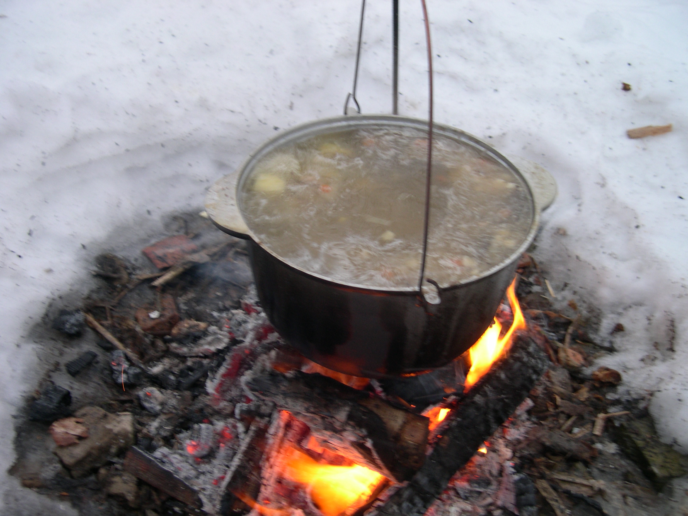 В походных условиях от сажи избавлялись довольно просто. Возле любого водоема (не обязательно, чтобы был водоем) находим участок сырой земли или песка свободной от растительности, скажем около трех метров. Руками упираешь котел в землю и вперед - работаешь ногами. Несколько пробежек с упором в почву котелком и порядок. Сполоснул водой, блестит как у кота хозяйство.Таким способом избавлялись даже от сантиметрового нагара после нерадивых предшественников. В многодневных походах такую операцию выполняли ежедневно, передавая следующим дежурным по лагерю чистую посуду. Эту процедуру лучше выполнять ранним утром, когда только начинает светать и даже пение птиц не тревожит тишину, а лагерь мертвым сном спит после посиделок у костра за полночь. Утренняя побудка лагеря под мелодичный скрип песка и металла обеспечена. Друзья "беззлобно ругались", желая доброго утра, обещали пристрелить,:gi-gi: но из палаток выползали. Как видите, до сих пор жив. Попробуйте, времени занимает всего 2-3 минуты и чистота котелка обеспечена.