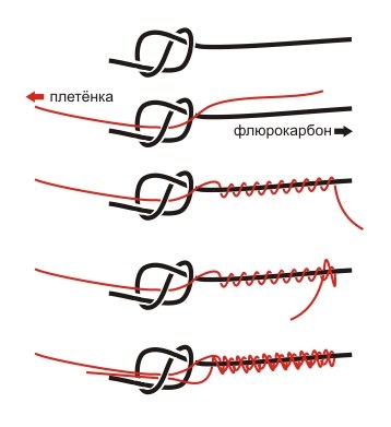Обратите внимание. Я уже это вспоминал. Куча узлов с разными названиями, которые похожи или взяты части какогото узла. Узел морковка, и узел рапала петля. Если петлю идущую к воблеру в узле рапала обрезать и вместо нее вернуть в узел плетенку, то получаем морковку. По сути добавлена обратная обмотка плетенкой, для утолщения и плавного перехода на узел флюра. Кто знает как вязать морковку сразу свяжет рапалу и наоборот. Кто знает как вяжется стопорная петля в матче, тот привяжет крючок с лопаткой и свяжет две лески и это один узел с разными названиями. Так что можно знать два три узла для всех наших случаев.