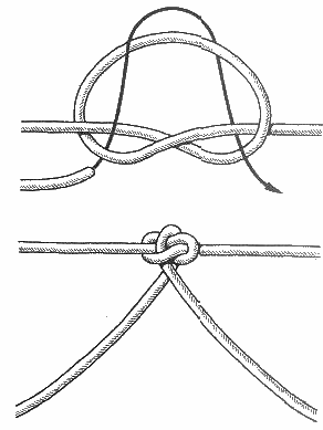 Змеиный узел. Змеиный узел. http://i046.radikal.ru/0801/0b/61918efc7ed5.gif Интересно, что надежность змеиного узла проверялась даже под микроскопом. Это исследование предпринял инженер-судостроитель Джок Пурвис, известный тем, что изучал под микроскопом деформации, возникающие при затягивании различных узлов. На Пурвиса ссылается А.Х. Чайтор в книжке под названием "Письма сыну рыболова-лососевщика", изданной в 1910 году. Этот узел, иногда по-английски называют также "кровавым" (правда, этим названием чаще обозначают один из видов утолщающих узлов, о которых мы обязательно поговорим в нашей газете). Змеиный узел очень надежен при соединении лесок одного диаметра. Если его использовать для снастей, заметно различающихся по толщине, например, для подвязывания поводка, то более тонкий конец следует сложить вдвое, что несколько повысит прочность узла. http://i021.radikal.ru/0801/31/6b0ab4ad108f.gif Существуют два способа вязки змеиного узла - внутренними и наружными спиралями. В первом случае (рис. 1) один свободный конец обвивают не менее трех раз одновременно вокруг собственного и чужого коренных концов, пропускают свободный конец между ними и утягивают образовавшуюся спираль. Затем то же делают со вторым свободным концом и окончательно затягивают узел за коренные концы. При втором способе (рис. 2) сначала один коренной конец обвивают чужым свободным концом, затем загибают его назад и пропускают между лесками перед первым оборотом спирали. То же делают со вторым свободным концом. Сильно потянув одновременно за свободные и коренные концы, окончательно затягивают узел.