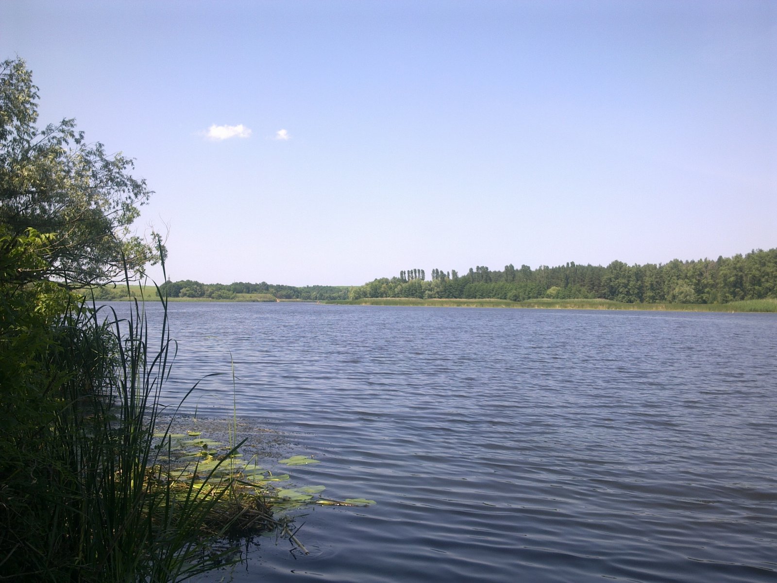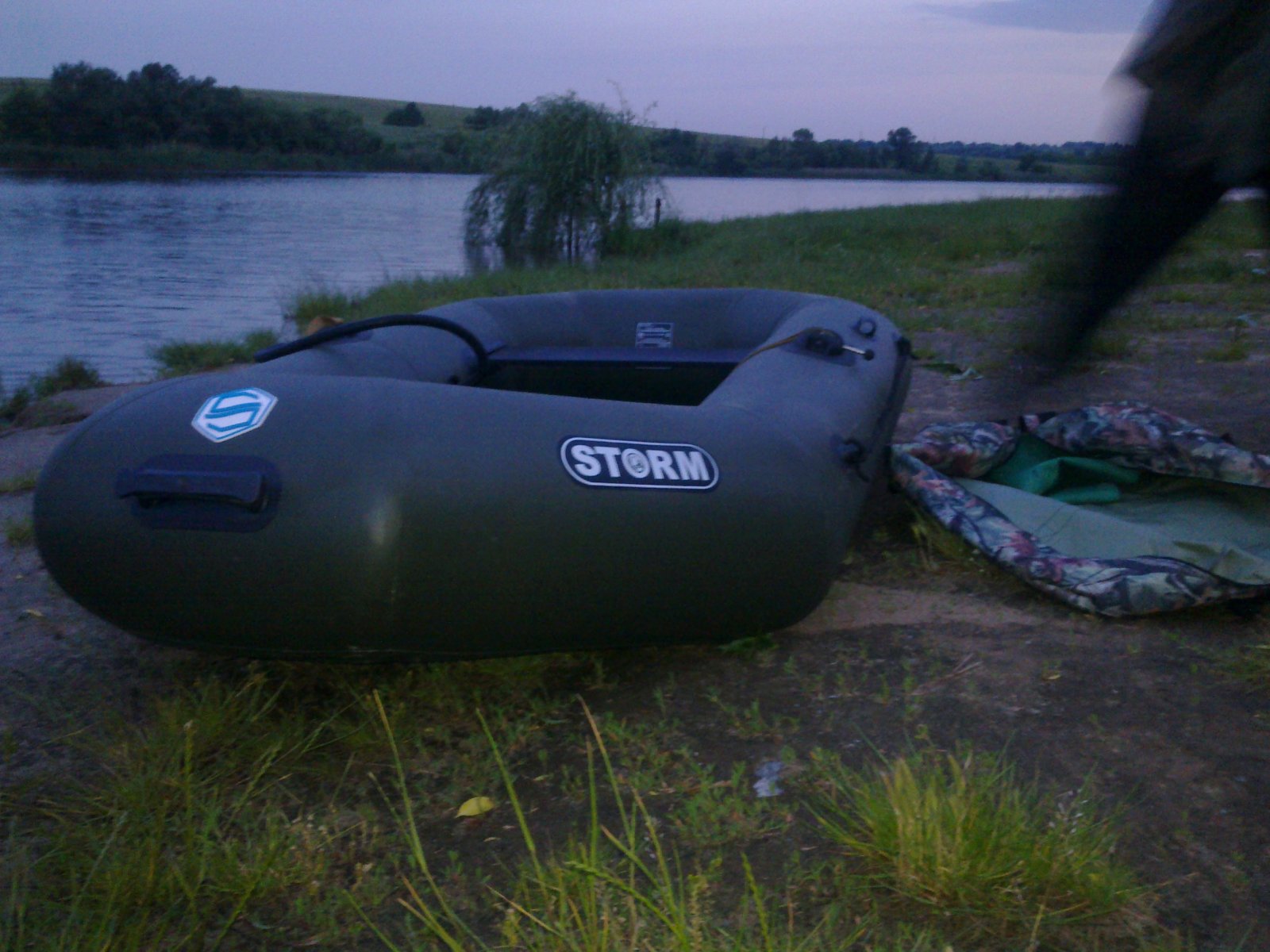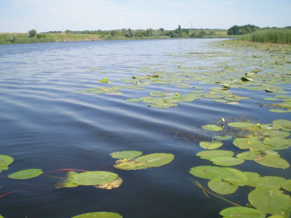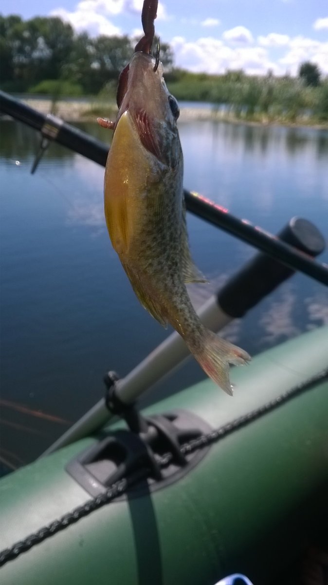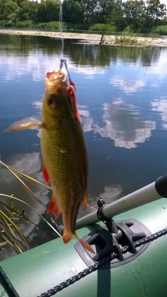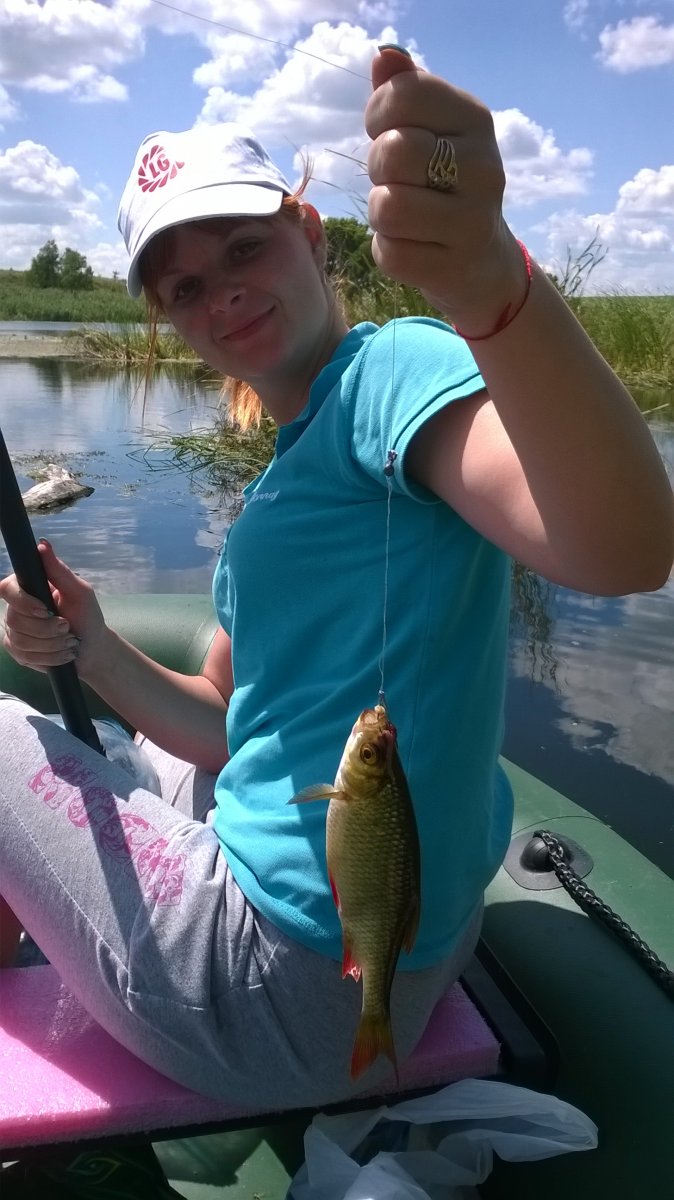 Цієї суботи 05/07 довелося знову відвідати чудову річку. Вибір ліг на ділянку акваторіїї неподалік с. Солдатьське біля овочевих полів. На цей раз взяв із собою дружину. Як говорять- жінка на кораблі.... але слава Богу все обійшлося:bayan:. На місце прибули доволі пізно, в 8 годин. Відразу швиденько надули човен і гайда на водні простори. Сочатку спробували облюбувати місце поблизу очерету, але так як глибина виявилась більше 2 метрів вибір ліг на спокійну заводь і таким чином меньшу рибку :пардон:.