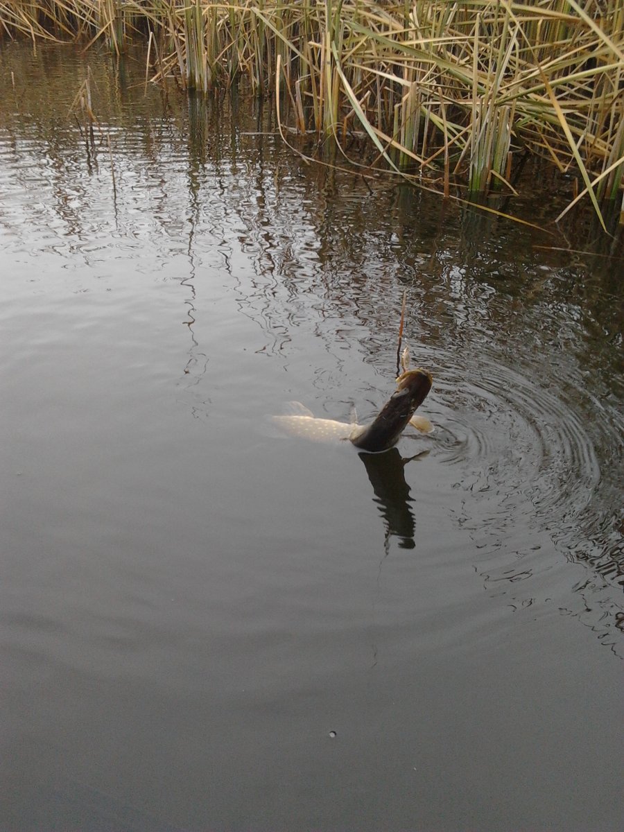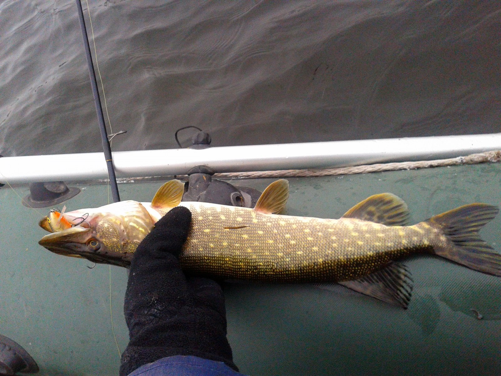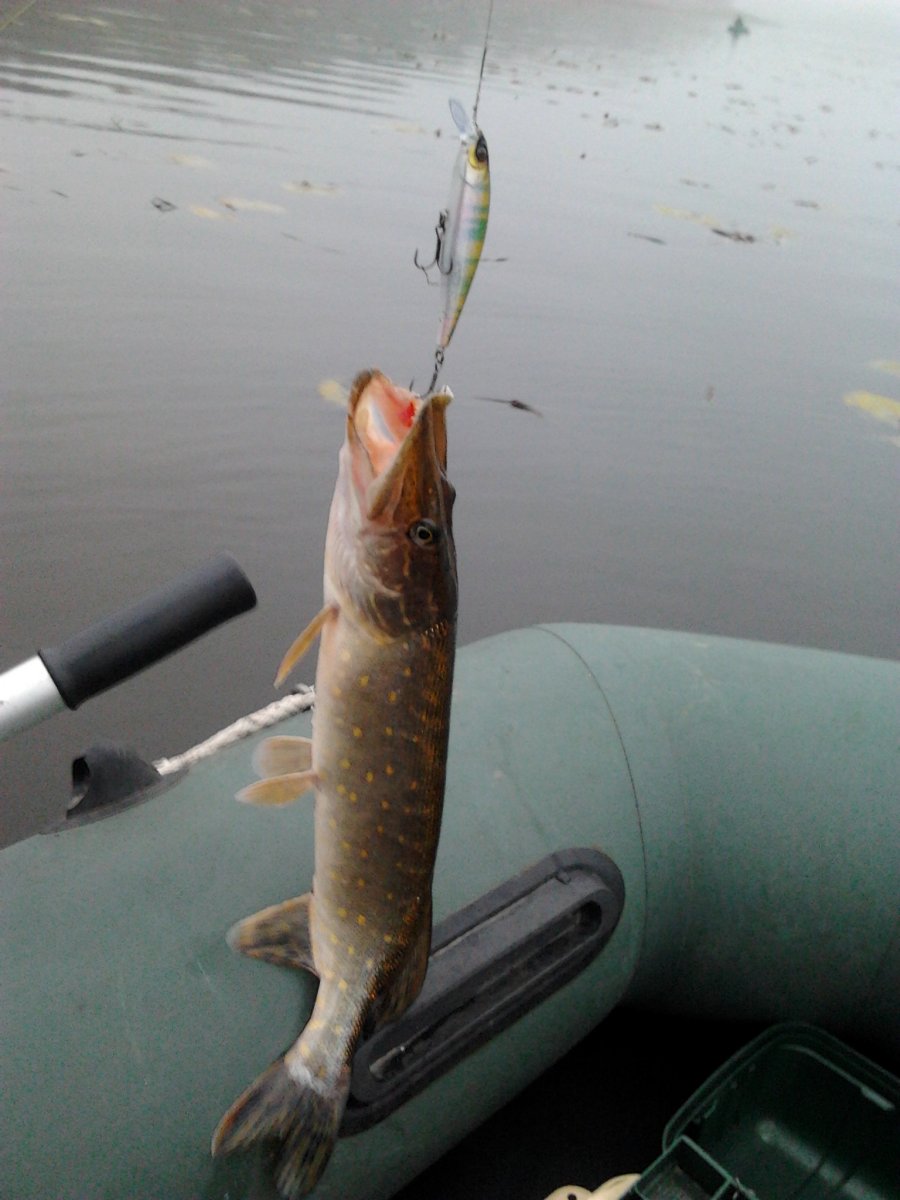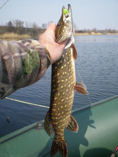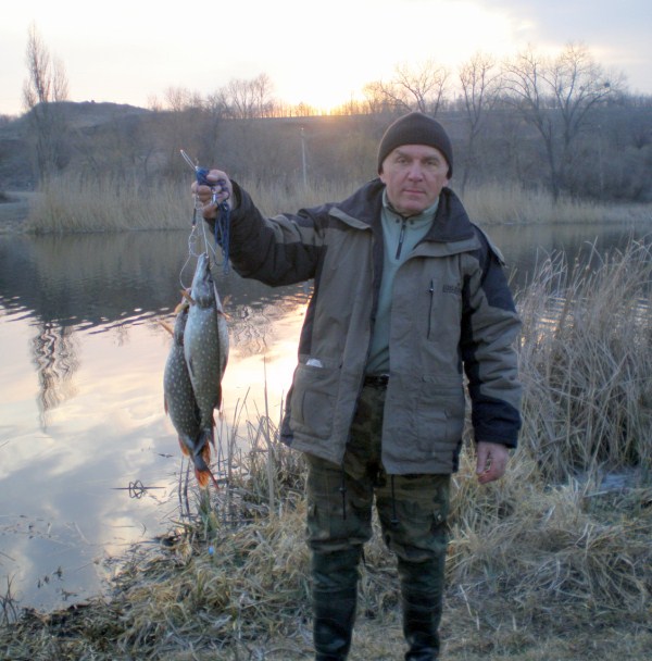 Насколько позволяет амуниция быстро собираю лодку, снасти и на воду. Первый блин оказался сразу же – отказался запускаться надежный Парсунчик, пока менял свечу и принуждал запуститься мотор прошло минут двадцать. Начинаю двигаться к проверенным ямам, в надежде ощутить поклевку судака. Увы ! Из проверенных четырех мест, где раннее встречался судак не сработало ни одно – судак молчит. Проходя к очередному месту услышал в камышах несколько шумных всплесков – явно щука. Передвигаюсь поближе к зарослям камыша и начинаю выманивать зубастую. Через десяток забросов, сменив несколько приманок, наконец зарабатываю долгожданную поклевку и через некоторое время подвожу к лодке упирающуюся зубастую красавицу. На вид в щучке немного больше килограмма. Настроение сразу улучшается, энтузиазм бьет через край. Увидев результат принимаю решение пройти троллингом вдоль полосы камыша. Решение оказалось ошибочным – не успев пройти и 100 метров цепляю воблером браконьерскую сеть:злой:. Выматываю сеть, режу ножом на лапшу и выношу на берег и предаю огню останки. Продолжаю троллинг и снова через сотню метров очередная сеть:злой: ! Повторяю предыдущую операцию и снова в путь. И снова через сотню метров очередная сеть:злой:. Я в шоке :(! Уже давненько не приходилось видеть такого засилия сетей !