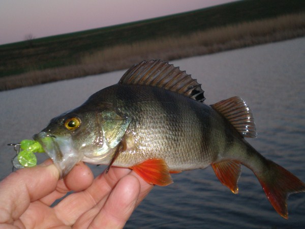 В общем не буду описывать подробности, но снимая пятую сеть уже не выдержал, позвонил на «горячую» линию Кировоградрыбоохраны и сообщил о беспределе на Синюхе:злой::злой::злой: – обещали принять меры. Настроение безнадежно испорчено:(. Больше для проформы проверил еще несколько судаковых точек. На одной из них при очередной проводке ощутил тычок и подвел к лодке 300- граммового красавца окуня.