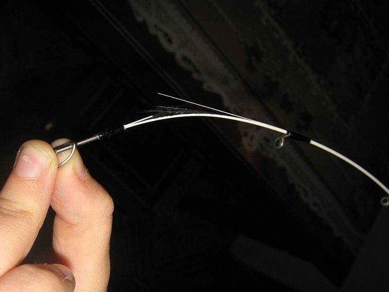 Гагарин, как говорится, до летался, а я до пи..... пи! Перехвалил я вообщем-то "птицу". Скорее брак, думаю что так и есть на самом деле. Ловил чебурахой в 4 грамма + приманка Bait Breath Fish Tail 2" = ну пусть 6 грамм даже, палка до 7 и с небольшим запасом. Шнур 0,13 ПП (примерно в пересчетах 8лб). Забросы делал не хлесткие, мягко, практически кистью руки. Перед забросом чувствую, что что-то не то. Присматриваюсь, а там жоппа. Не сломал, а треснула вершинка, между первым и вторым колечком. Вот фото. На сколько хватило возможностей моей старенькой мыльницы сделать это в макросъемке. То, что есть в рознице на Ибисе вершинки знаю, придется покупать. Но...., не факт что и эта может "гавкнуться". Вот такая печалька. Читал всю ветку на оф. сайте Фаворита по ББ. Видел, что очень много обращалось людей к админу с вопросом покупки новой вершинки. Еще подумал, как они умудряются все ее сломать??? Оказалось на поверку что совсем просто. Кто что думает на сей счет, шановне товариство???