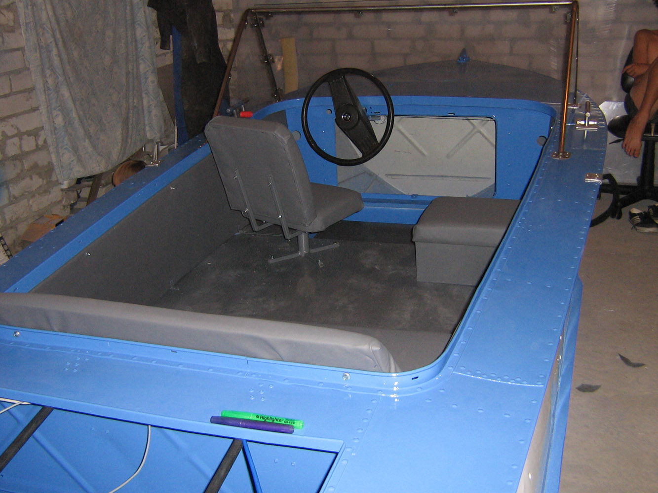 Просто ВСЁ делали вдвоем с братом, включая и покраску. Из затрат: 1-краска, 2-офисные кресла, 3-бакелитовая фанера (6 и 9 мм по 1 листу) 4- один метр нерж. трубы, 5-рулевая колонка от мазды (выброшенные 30$), 6- 7- 8- ......... расходники. Плюс то, что имелось в наличии (кожзам, заклепки, дерево, ИНСТРУМЕНТ)