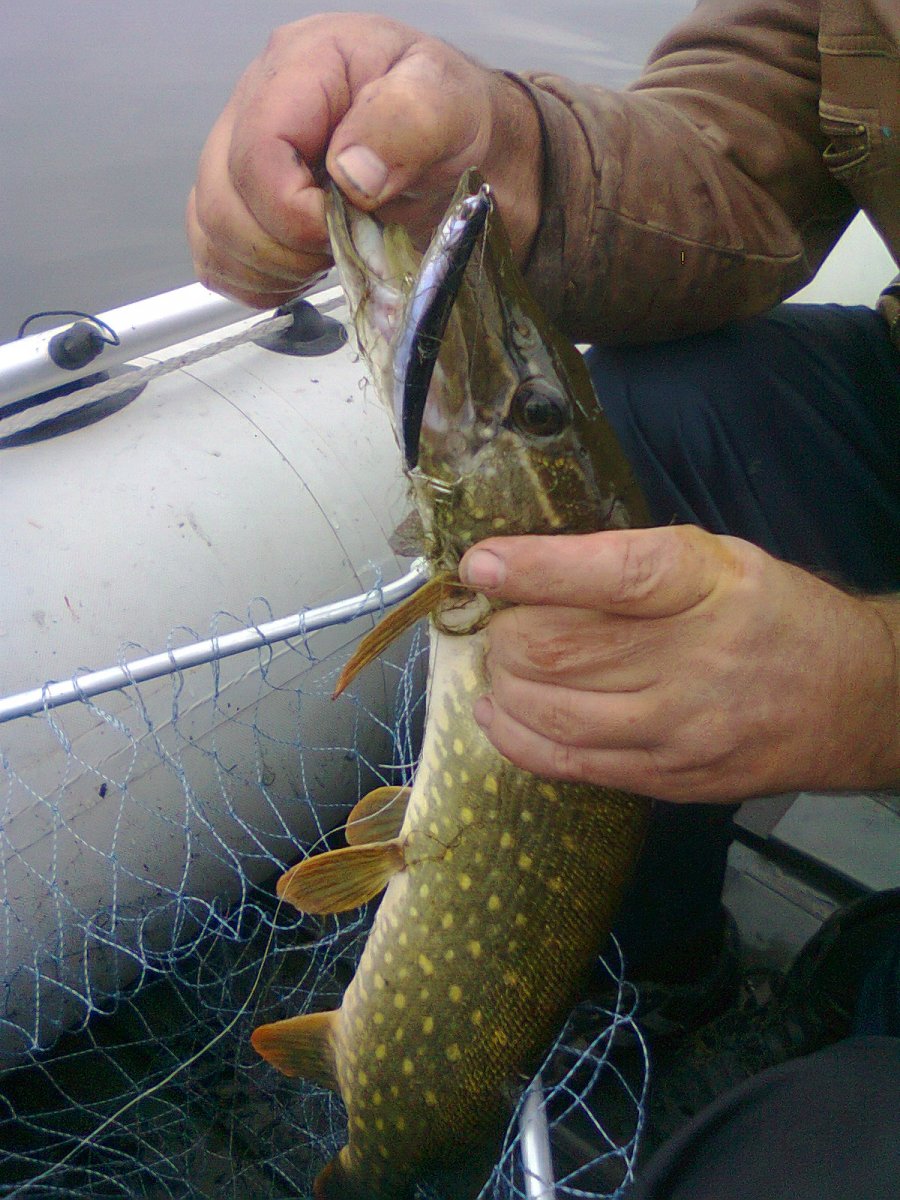Были вчера и сегодня. Оба дня очень схожи, как по погоде, так и по активности зубатой. На воде с 9:00.Пасмурно,ветерок,рябь,а сегодня и вовсе срывался дождик. Активность Щуки довольно высока, но при этом высока и требовательность к проводке. Активная проводка её никак не прильщала, о чем красноречиво говорят результаты встречных спиннингистов, которые привыкли ловить тут крэнками-нулевиками банальной равномеркой. Наш же экипаж вызывал неподдельное удивление у последних, регулярными поклёвками, зрелищными выходами, и прочими, приятными искушенной душе моментами. Работал «умирающий» твич. Аккуратный заброс в прогальчик, небольшая пауза, смык-смык- БАБАХ!БУРУН,БРЫЗГИ,СВЕЧИ!Адреналину МОРЕ! Порядка двадцати поклёвок, были и промахи и сходы, и дельфиньи прыжки, много утоплено! Красотень короче!А виновники торжества: ShallowFirst, Косадаковский DedFloat,BentMinnow 86F! От последнего я вообще в восторге! Любопытная закономерность-вся самая крупная рыба поймана именно на эту приманку. До смешного – батя плюётся, что не поклёвка, то полкилушка или около того(на Косадаку), у меня на бент – кг или больше!Вот как-то так! Вобщем всем удачных рыбалок ,злых поклевок и хорошего настроения! Спасибо за внимание, увидимся на рыбалке!