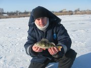 Открытие сезона - "Зима2009/10" состоялось!!!Сегодня в 6:00 уже на месте.Решили с отцом отдать предпочтение мелководным плесам перед малой дамбой(р-н Зелёновки).Через пять минут после начала ловли,ещё в рассветных сумерках - первая поклёвка,и зачетный матрос,грамм под 200 на льду!Приятное начало-заслуга отца(блеснение)!!!Долго расписывать,при всём желании,не буду,ограничусь только полезной информацией:окушок разных размеров клевал исправно вплоть до нашего отъезда домой (15:30),к обеду народу рядом с нами ужо было человек 20!!!Клевало у всех!!Ловили на мотыля или блёсенку.Но,забегая на перёд,отмечу,что у большинства - полосатый разбойник редко превышал размер в 100-150гр.Я же из-за постоянного ветра и мороза,доставляющих кучу неудобств при наживлении мотыля(а при активном клёве-это очень частая процедура)решил отказаться от последнего,и упёрся в безмотылку-как результат,полосатый ощутимо крупнее,даже визуально,преобладал в улове(150-300гр).Ставили и жерлицы с мелким окуньком - ОП!!,если не считать один холостой выстрел.У местных жерличников-тоже самое (хоть у них и на карасика)!!!В целом же рыбалка оч. понравилась!Хватит и на уху и на жарёху!!А главное получено массу положительных эмоций от самого процесса,и от общения с "коллегами по цеху"!!