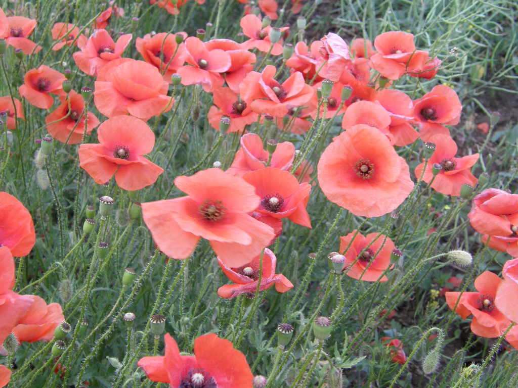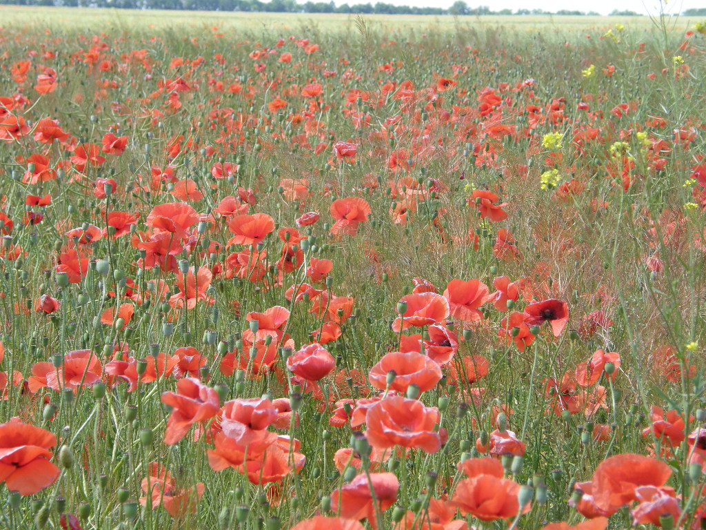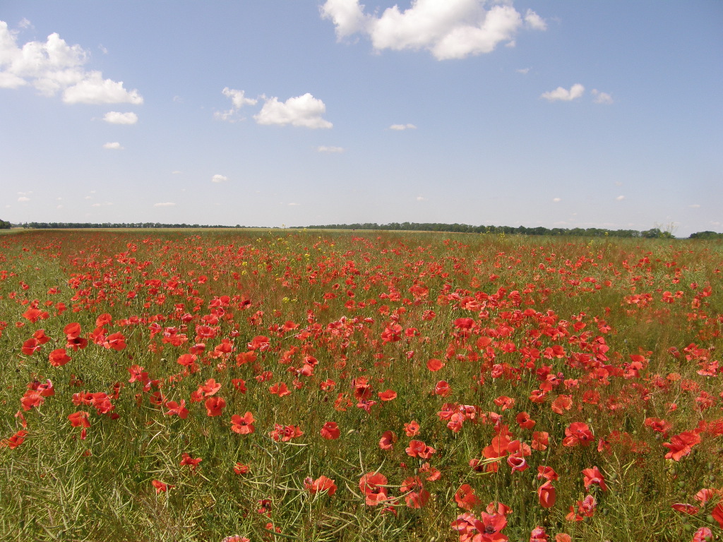 З вікна поїзда бачив буквально червоне від дикого маку поле....а далі латка чогось жовтого, гречка, напевне...краса...шкода, що фотоапарата не було, та і на ходу фото не вийшло б гарне.
