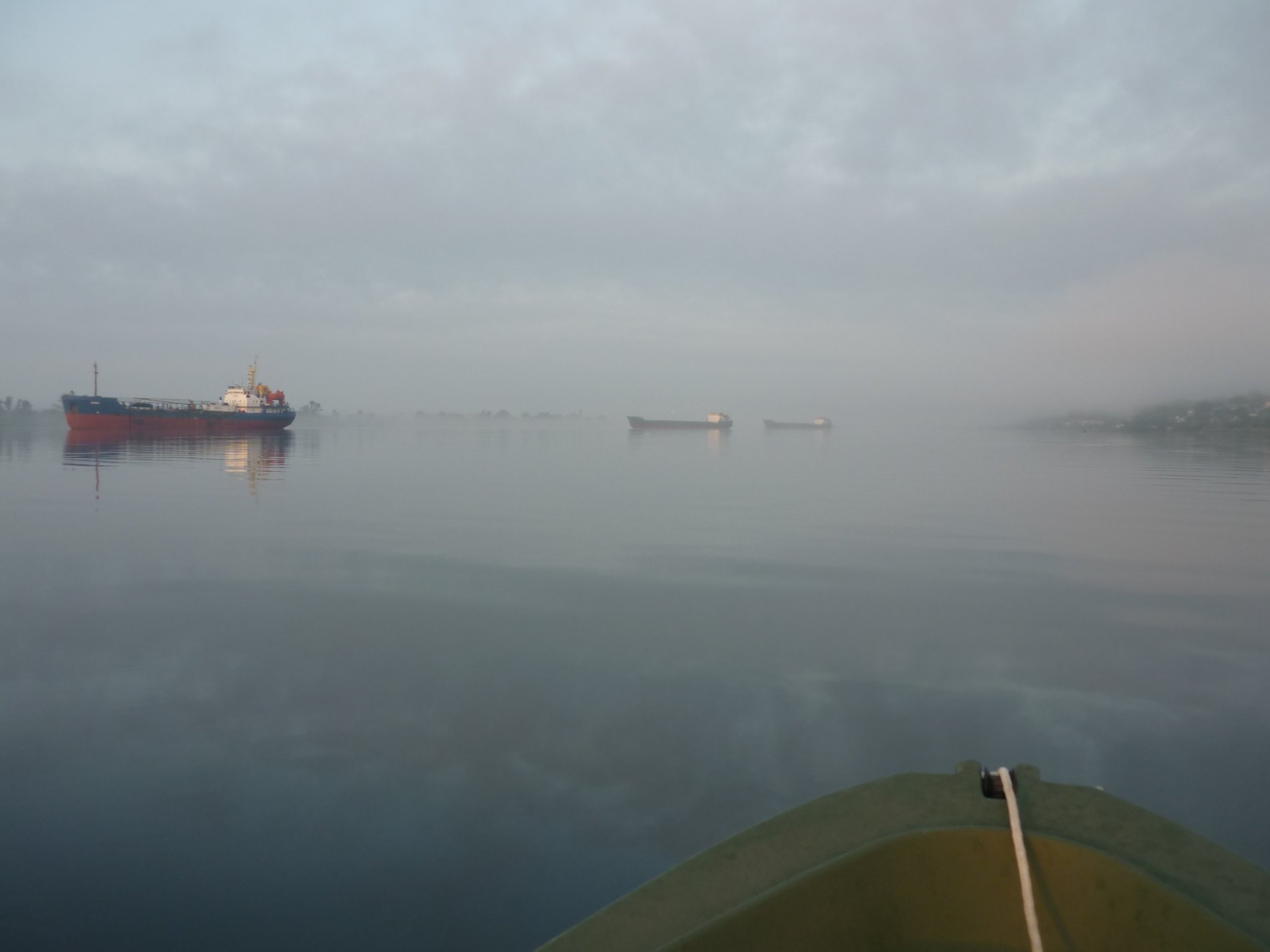 Особенно завораживает Днепр в тумане, да ещё на фоне морских кораблей. Первые 2 фото сделаны в конце сентября, а другие 2 фото вчера, когда ехал на место рыбалки.
