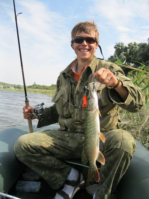 Рыбачили сегодня на Софиевке, в первый раз, в районе гранитного карьера. С самого утра, как только рассвело, под противоположным берегом с лодки у меня на третьем или четвертом забросе взял крокодил. После упорной и долгой борьбы я подтянул щуку, по виду гораздо больше, чем я поймал в этом году на 3 кг, но она зашла под лодку и зацепилась за якорный шнур. Подсака я в лодку не взял. Но я все равно ее поднял к лодке и чуть-чуть не успел схватить за жабры. Взялся одной рукой уже за леску. Но последовал сильный рывок и ... обрыв поводка! Я расстроился так, что целый день рыбалка так и не наладилась. Было желание выплыть на берег... Кроме трех окуней я больше ничего из хищника не смог поймать. Выплыл через часа два и поймал на удочку килограмма четыре некрупной плотвы. А мой товарищ был в этот день на коне. Поймал пять щук (примерно две по 2 кг, две по 1,5 кг и одна на 1 кг) и еще два схода. А брат мой с берега наловил очень прилично плотвы.