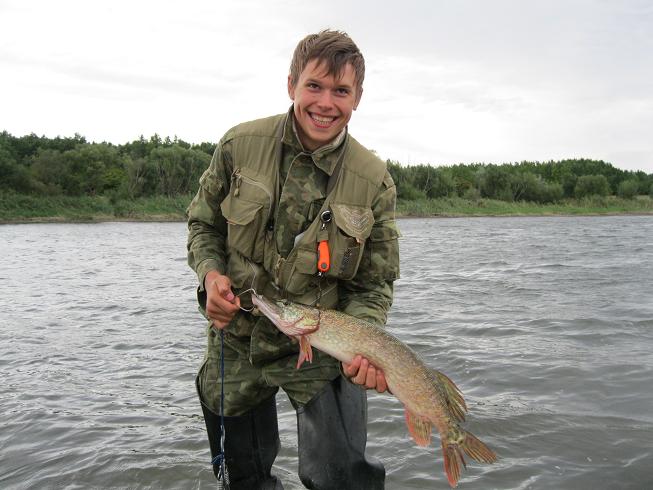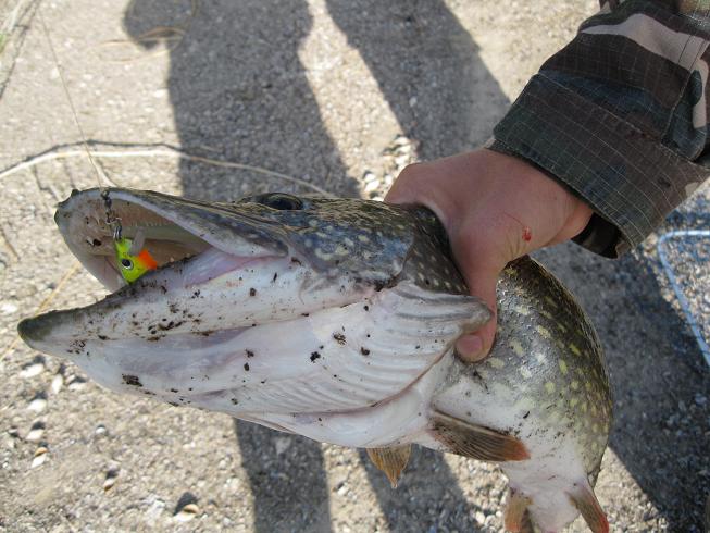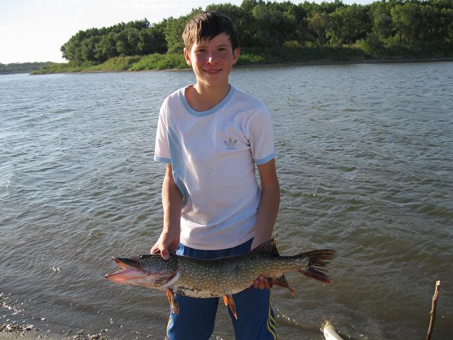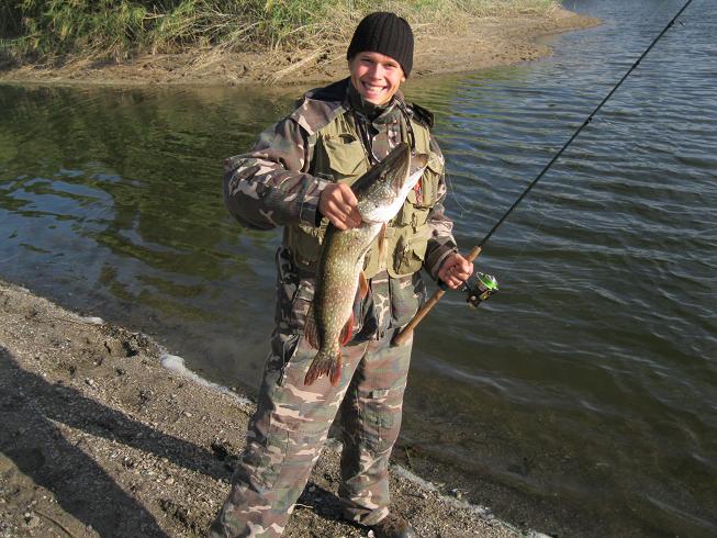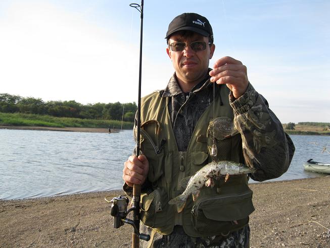 Усю неділю готувався до цієї риболовлі. 3.45 задзвенів телефон - треба вставати, одягатись, поїсти та йти за автомобілем. Коли їхали по місту спочатку всі світлофори були зелені, але на деяких прийшлось зупинитися (поганий знак). По дорозі ми зустріли лисицю, яка перебігала дорогу. Доїхали швидко. Як глянули скільки води залишилось:bm:, зразу ж промайнула думка: «де ми будемо ловити». Воду ще скинули.:злой: Ранок був холодний, без вітру. О 7.00 батько витягнув першу щуку. Потім не клювало. Проскакували окушки. Плавали, плавали і натрапили на чудову затоку,:ura: в якій щука ганяла малька як скажена. Я без роздуму ставлю свого любимчика JACKALL TINY MAGALLON– нуль, потім інший воблер- теж нуль. Прийшов мій молодший брат Олександр і на першому закиданні витяг гарну щуку:applodesments:. Згодом ми натрапили на окуня. Клював як скажений і тільки на три приманки. (не скажу які):gi-gi:. ВСЬОГО ОКУНЯ МИ ВИПУСТИЛИ. Взяли лише деяких, тих яких операція не врятувала. В мене був сход великого окуня- десь 400 грамів. Після обіду клювати перестало. В батька було три сходи зубастої красуні. Я не почув ні одного щучого удару, тільки окунь. В брата щука на 2.700 кг (як показали дома терези). Мабуть він самий молодший, тому йому й щастить кожної рибалки:gi-gi:. Рибаків багато, але спінінгістів було менше чим в той раз. Щуки не впіймав, але відпочив і насолодився тим що клював окунь. Хай щастить.