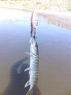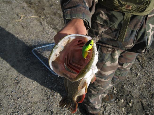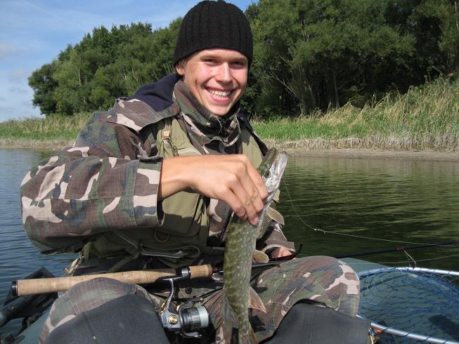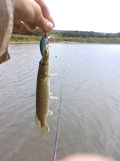 Були сьогодні на водосховищі. Народу було дуже багато, я нарахував 18 автомобілів, човнів було десь за 20, одним словом, як на змаганнях. Спочатку ловили з човна. Клював окунець та щука від 15 –до 20 см. Сьогодні я свій Мадцукер разловив. Більшу частину улову я впіймав на нього:ura:. У батька теж саме, тільки він ловив на залізо. Бачив таку картину, у чоловіка який рибалив навпроти нас клюнуло щось велике. Він довго боровся, але дав слабини і риба завела за шнур якоря, і все… Більша частина щук виходила за приманкою але не брала її.:( Сама велика щука це 300 грам - я впіймав.:D Більшої не бачили. Під кінець риболовлі я з батьком пішов у таке болото, глибина десь 30- 40 см. так там я впіймав три щуки вагою до 50 грамів, а то може ще й менше, і рекордну зубасту красуню теж там впіймав. Батько від мене не відставав: витяг рака та щучку:somyara:. Впіймали 17 окунчиків. Я відпустив рости 5 щучок, батько, теж стільки. Щука вся повернута у водойму! Риболовля сподобалась. Хай щастить.