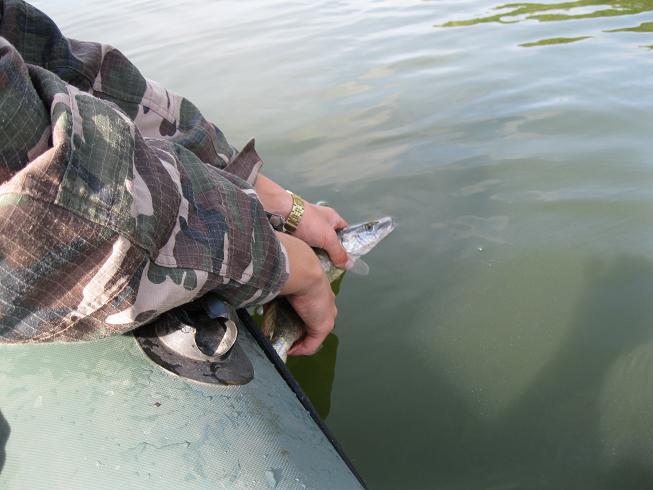 Напишу кратко. Ловля происходила вчера. Вода упала максимум на 0,5 метров- опять ремонтируют дамбу.:злой: Ветер был 8 м/c, мы впервые ловили при таком ветре. Промок до трусов, в лодке все плавало. Только убрал воду, волна сразу же добавила ее. Мы ловили только на железо (вертушки, колебалки), а ДЖО успешно ловил только на воблера, даже не опускал в воду блесны. Несмотря на сильный ветер, рыбу поймали все. Как говорится: «Что плохо для рыбака то хорошо для рыбы».