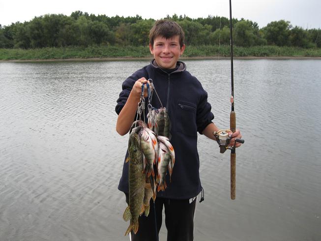 Вчора батько та брат уїхали на риболовлю з ночівлею:1032:. Про це розповідати довго не буду. Спіймали два щупачка які були повернуті у рідну стихію. О 4.30 за мною заїхав ДЖО і ми вирушили до місця рибалки. Доки ми розкладалися, сонце вже встало і було світло:solnce2:. Вранці термометр показував + 20 за вікном. Першу рибу спіймав я на поппер, потім батько та брат:ura:. Води ще менше стало. Згодом водосховище перетвориться на калюжу:злой:, якщо будуть скидувати воду такими темпами. Окунь клював на вертушки різного номеру. А ось ключик до щуки підбирали довго%). Сьогодні щука клювала на «ХХХХХ».:) Клювали малі щупачки: 15 -20 см. Іноді вдавалося впіймати на 400 грам та все рівно ми її відпускали. Риба клювала на такі приманки, що на цій водоймі вони не разу не ловили рибу. А в цей день «дали жару». В мене на рахунку було сім окунчиків, один з яких потягнув на 200 грамів:1_0072:. Ще в мене був схід, не знаю чого, думаю то був великий окунь. Пощастило ДЖО, у нього на кукані плавало дві щуки. Риба була активна – маленька щука, великої навіть не бачили. Але все рівно я отримав малу порцію адреналіну від ловлі на поппер. Батько теж був у захваті від поппера. А наймолодший як завжди відмітився щукою під кінець рибалки.:gi-gi: Хай щастить.