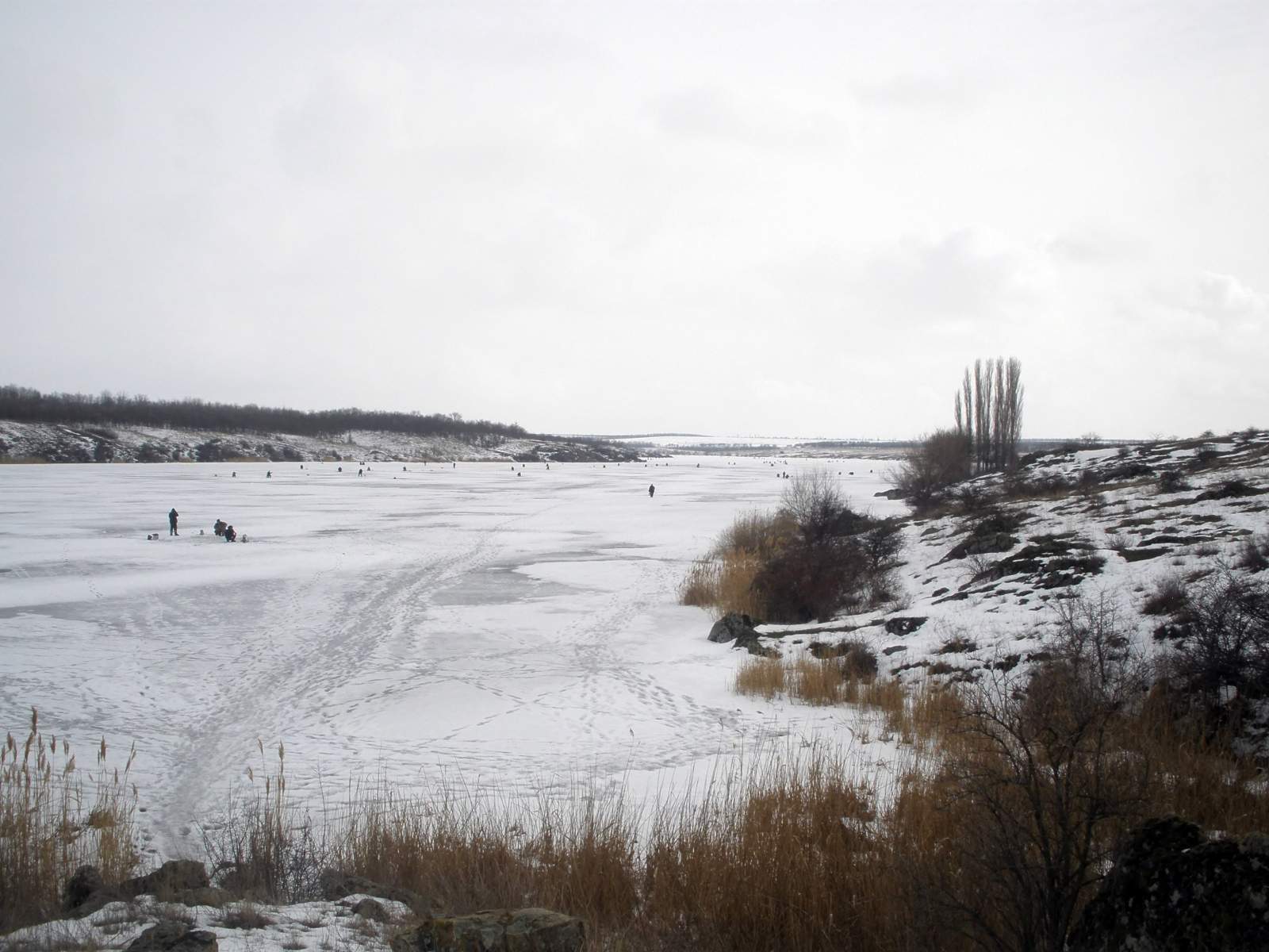 17.03.12 в субботу я, саша 83 и еще один товарищ были вот здесь в заливе напротив дамбы. Из Кривого Рога выехали в 4:30, дорога не очень, на берегу были в 6:00, "позавтракали":tost: и на лед.