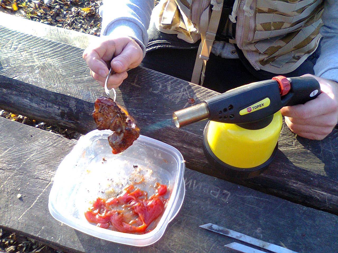 Костер уже догорел, а холодное мясо как то не лезет в горло. Вот так вот, кум проявил смекалку:)