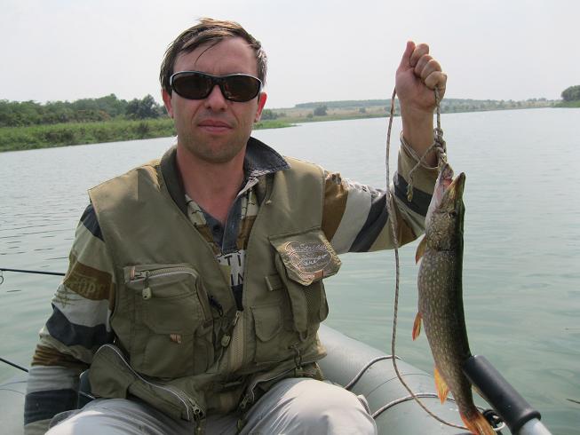 Вчера Я, папа и брат рванули на Софиевское вдх. с ночевкой. Приехали часов в 10. Вода, можно сказать, бульон: зеленая, мутная да еще и воняет:buee:. Нам это не помешало. Мы быстро накачали лодку, собрали спиннинги и поплыли:rybak2: в красивейшие места водохранилища. В 11.00 у отца поклевка на MYRANовскую блесну и трехминутное вываживание красавицы на 1.5 кг – отличное открытие рыбалки!:ura: Между щучками проскакивали и окушки ладошечного размера. Так мы ловили до 16.00, а потом решили сделать передышку и отдохнуть от жары. Ближе к 17.00 мы поплыли к новым местам. Вода такая мутная, что видимость максимум 5 см,:( поэтому приходилось ставить воблера с высокой частотой колебаний. Поставил воблер Rapala DT-4, сделал несколько проводок – ноль. Предложил отцу кинуть приманку моим спиннингом, и он на второй проводке вытягивает очередную щучку на 700 грамм. Уже начинало темнеть, и мы решили выплыть и разбить лагерь. Пока я с братом собирал палатку папа варил уху:). Шли такие запахи, что уже хотелось побыстрее покушать.:gi-gi: Погода вечером была изумительная: шелестел камыш, пели сверчки и цикады и с пронзительным писком летали комары. Уха вышла на славу. К десяти часам шум мотора, мы выглянули из палатки и все дружно смотрели кто ночью плавает с фонарем. По-моему, это инспекция плавала с кошкой по водоему в поисках сетей браконьеров. На свежем воздухе засыпаешь в два раза быстрее. В 4.45 прозвенел будильник – пора вставать. Утром было прохладно, пришлось одеть штаны. В полшестого мы уже кидали аппетитные приманки. На воде был туман, а вода теплая – теплая. Брат только и ловил окуня с ладошку, а у меня - ноль. Изредка удавалось поймать окуня, а папа опять отличился двумя щуками около 700 грамм.:applodesments: У меня было два удара, но щука только оставляла следы на воблере и не цеплялась, ни за один тройник. К обеду погода ни с того, ни с сего, резко поменялась. Поднялся ветер и мы выплыли. Там где мы стояли, был такой срач, что пришлось слегонца убраться. Я отличился только маленьким судачком, щучкой на 15 см и четырьмя окунями:стыдно: – не мой день. Клевало с начала на вертушки желтого цвета потом на воблер с высокой частотой. На следующий день клевало только на вертушки белого цвета. Не всегда же приезжать домой с полным куканом рыбы! Главное- отдохнули, пообщались с природой. Вся щука стоит в камыше и при вываживании делала свечи. Все щуки глотали так приманку, что без зевника и зажима не обходилось ни одно вываживание. Наш улов весил ровно 2. 800 кг. Всем удачи.