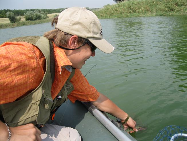 Были с ночевкой 22-23.08, вечером упирались в тарань на фидеры и должен сказать что клевало отменно (на опарыш и на червя). Козлы и лещи не попались к сожалению. На следующий день спиннинги в руки и в 5-30 мы уже на воде. Утро ничего хорошего не принесло, может вода холодновата, а после восхода Ярила очень неплохо начал брать окунь. Брал на все виды силикона, ну а лучше всего на вот это чудо http://fishing-shop.org/upload/iblock/7ce/7770.jpg:1_0072:. Если бы был под рукой спичечный коробок...то и на него можно было поймать полосатого:hook:. Для информации: ночью очень холодно, даже горючее под уху не помогло :tost:. Очень понравилось как работает инспекция на воде. Когда стемнело, метров двести от нас местные ставили сети(через все русло) :censored:. Нам было все видно т.к. было полнолуние. Между собой говорим, вот бы неплохо чтобы сейчас инспекция появилась. И тут из-за поворота, как конница Буденного :trolling: :company:на всех парах мчится катер :applodesments:, ну и как вы догадались сеть была ними конфискована, хозяевам этого "добра" удалось скрыться :злой:. В течении ночи ребята были раза 3 на акватории, молодцы.