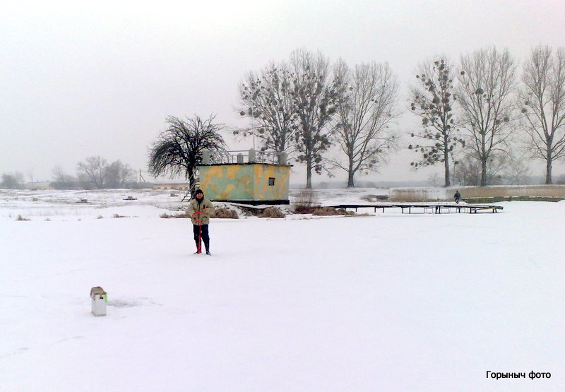 Юра предложил порыбачить на Ровенском полигоне на «танковом» ставке, а сам не смог, но договорился за нас. И вот мы вчетвером около 8 часов бурим первые лунки.