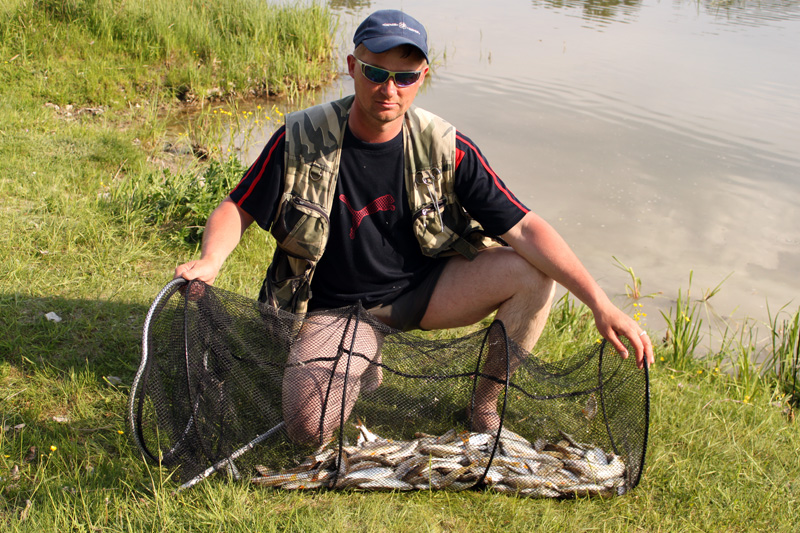 Колька Свирык сразу принялся настраивать фидер и поплавчанку. После хорошего закорма рыба стала столбом и клевала буквально на падении приманки. Поскольку, некоторые даже не раскладывали свои снасти, то мы ходили по-очереди к Коле и помогали ему с ловлей уклейки. На фото можно увидеть, сколько было поймано рыбы.