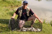 Вчера, устроили совместное празднования прошедших Дней Рождения Сереги Самурая и моего. Благодаря Юре(Viktorovi4), проблем с доездом на место не произошло. Компания собралась веселая и, время проводить было в большое удовольствие. Колька Свирык сразу принялся настраивать фидер и поплавчанку. После хорошего закорма рыба стала столбом и клевала буквально на падении приманки. Поскольку, некоторые даже не раскладывали свои снасти, то мы ходили по-очереди к Коле и помогали ему с ловлей уклейки. На фото можно увидеть, сколько было поймано рыбы. Так же позабавлялись в практике заброса мультипликатоным твиччинговым набором Олега. Что касается спиннинга, то справно клевал мелкий прибрежный окунь, и редко поклевывала некрупная щучка . Борису в самом конце дня удалось поймать неплохого окуня, что заметно прибавило позитива. Хотя рыбалки было маловато, но отдых получился просто отменный. Шашлычок под водочку и приятная компания все-таки останутся в памяти. Погодка радовала теплотой, и водичка была как парное молоко. Спасибо ребятам за отдых! Вот пару фоток(многие не прошли цензуру и не были выложены ):
