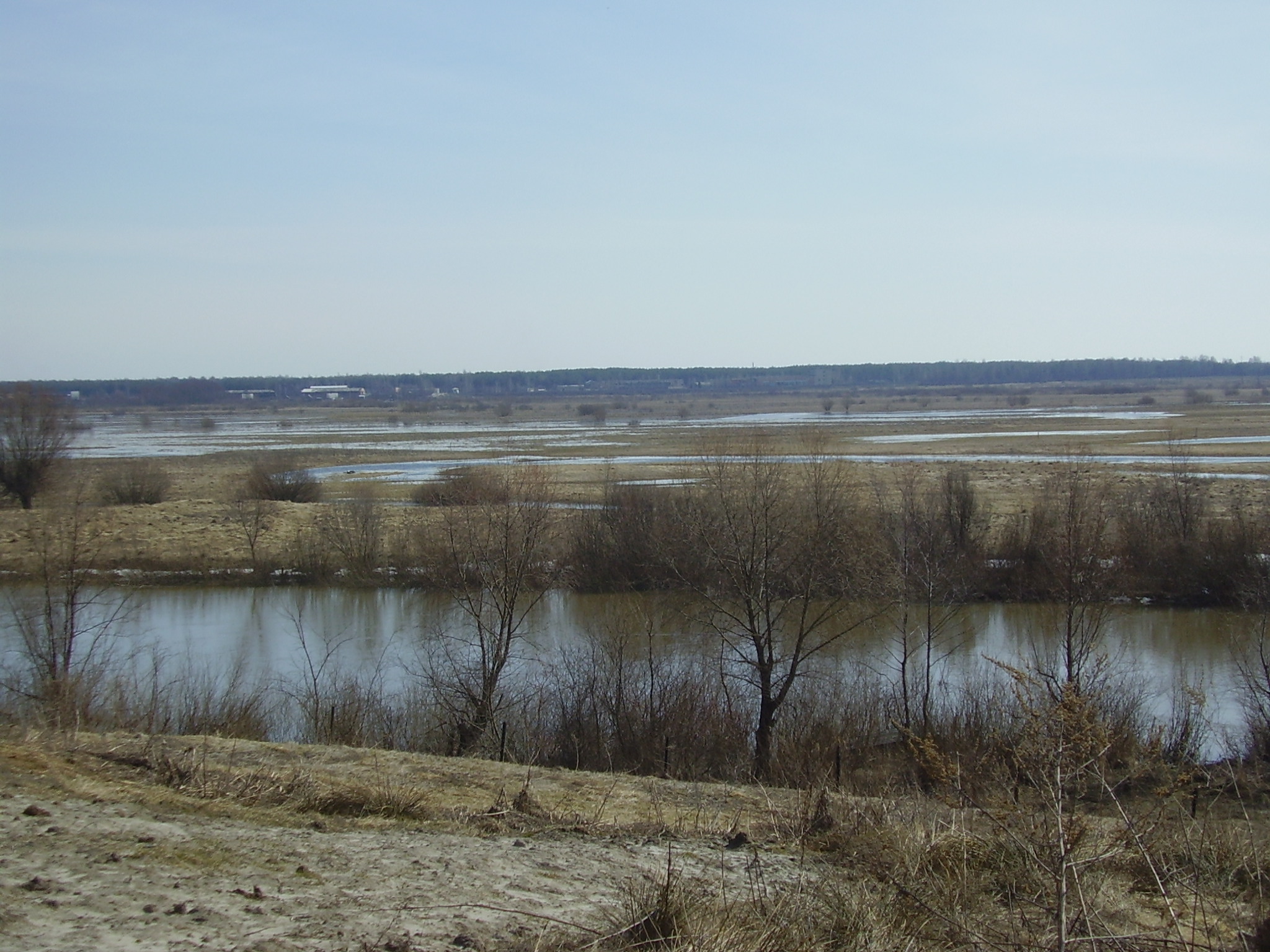 Доехать до старицы не удалось, шел пешком. Хоть спиннинг и брал и пару раз кинул, но концентрация рыбы в такой большой воде очень мала :) и словить ее тут пока видимо не реально.
